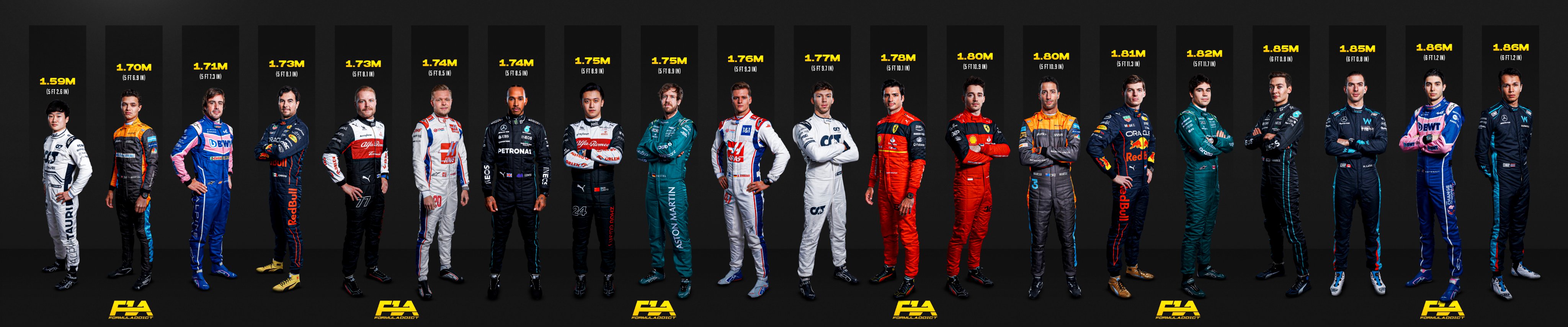 2022赛季围场内所有车手的身高一览