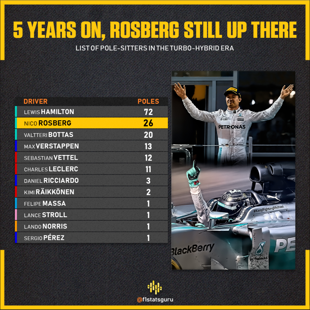 在罗斯伯格退役五年后,他在混动时代的杆位数仍然能排在第二