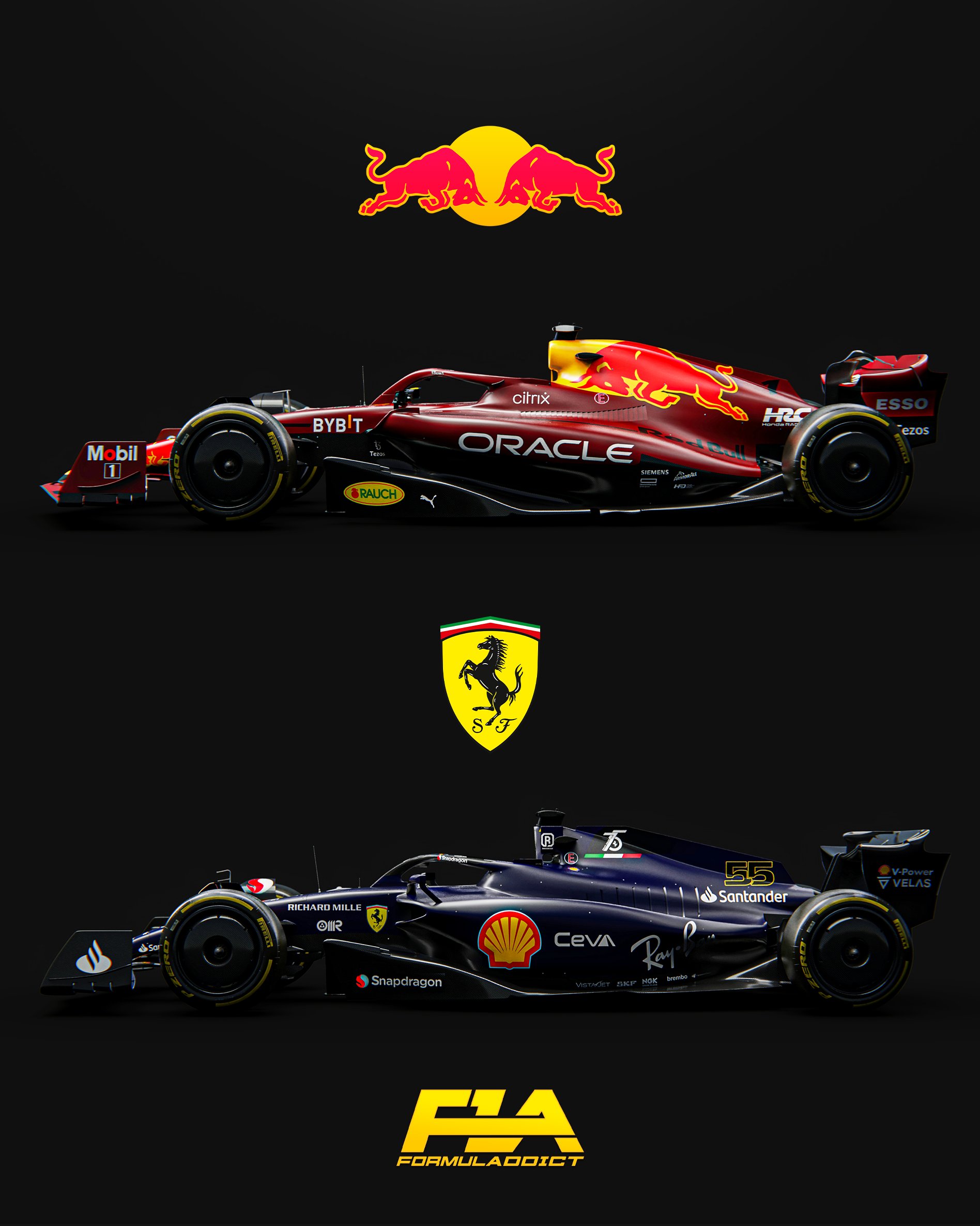 赛车博主Formula Addict发表了一篇帖子,如果将红牛和法拉利的涂装互换,你还会喜欢吗?