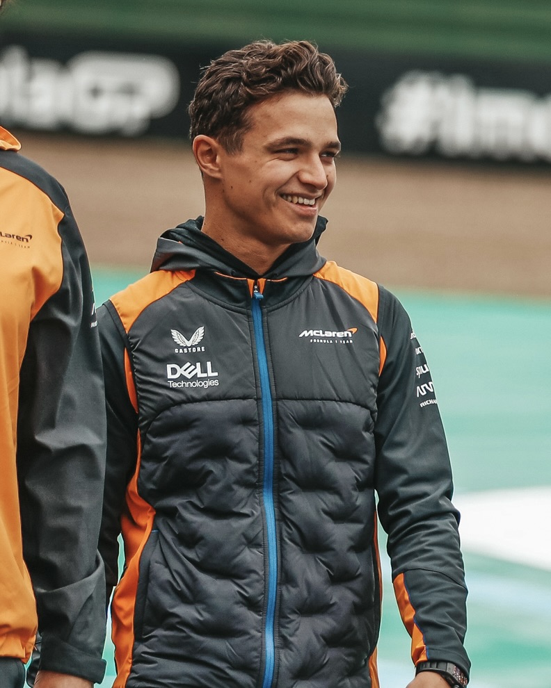 诺里斯来走赛道了,满脸笑容心情不错