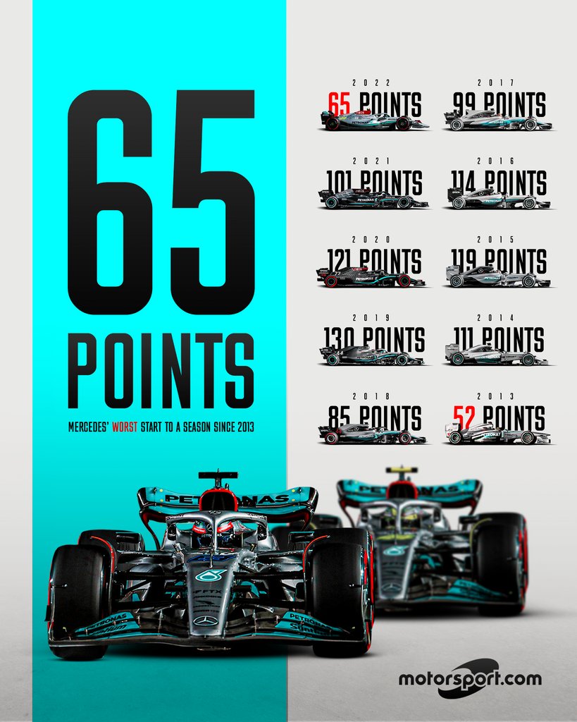 梅赛德斯本赛季前三场比赛仅仅得到65分,这创下了他们自2013年52分之后最差的赛季前三场比赛纪录。