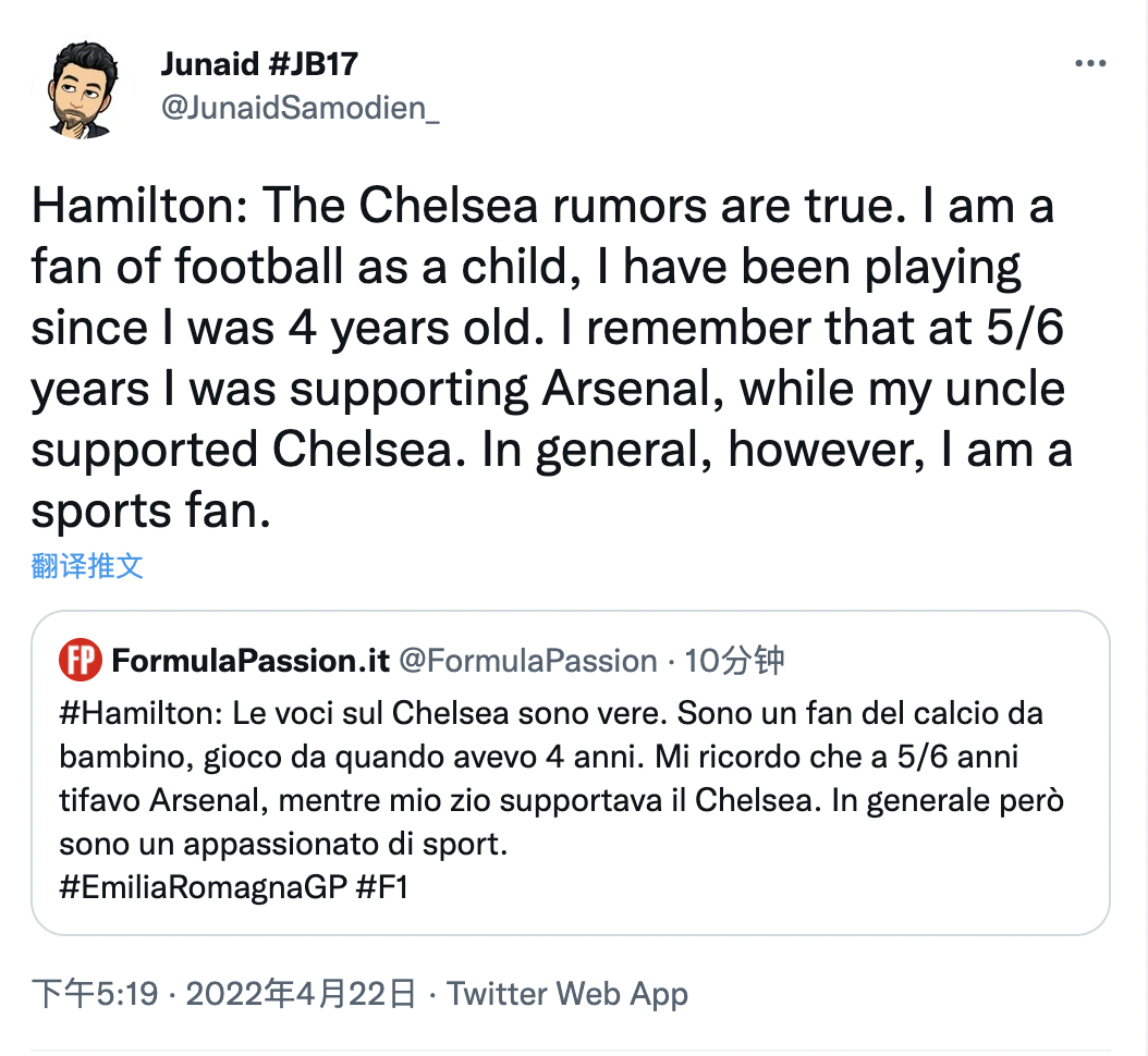 汉密尔顿在本周赛前发布会上表示:“有关切尔西的传言是真的。”