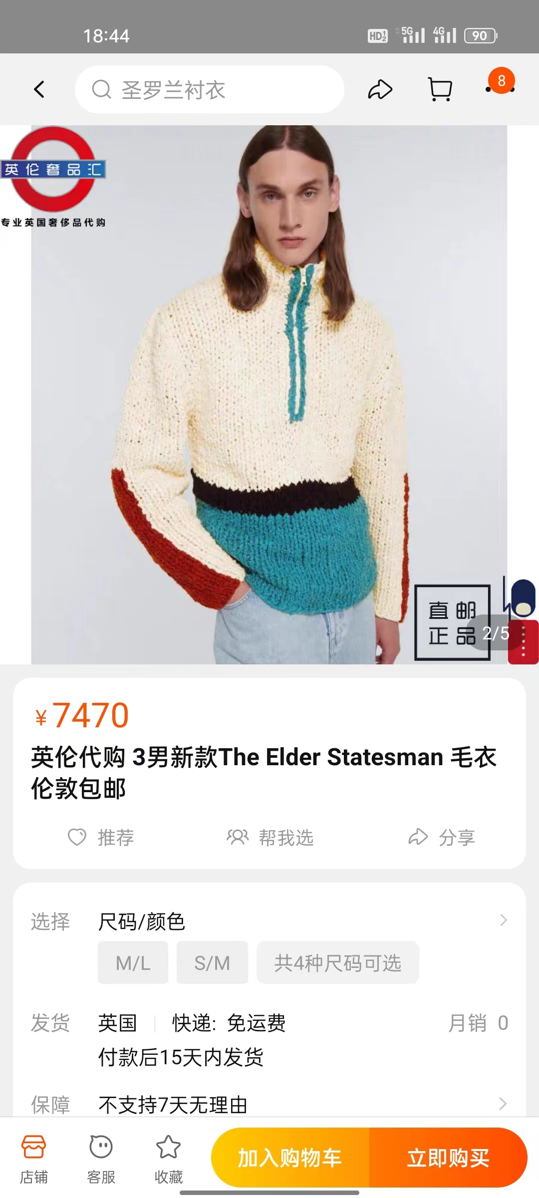 这件毛衣,官网售价885美元,淘宝代购“仅仅”7470元,比之前汉密尔顿的穿着便宜不少。