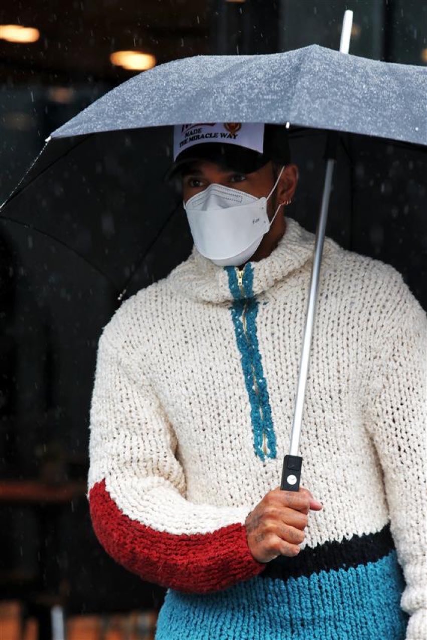 F1伊莫拉站周五,汉密尔顿身着厚重“毛衣”亮相
