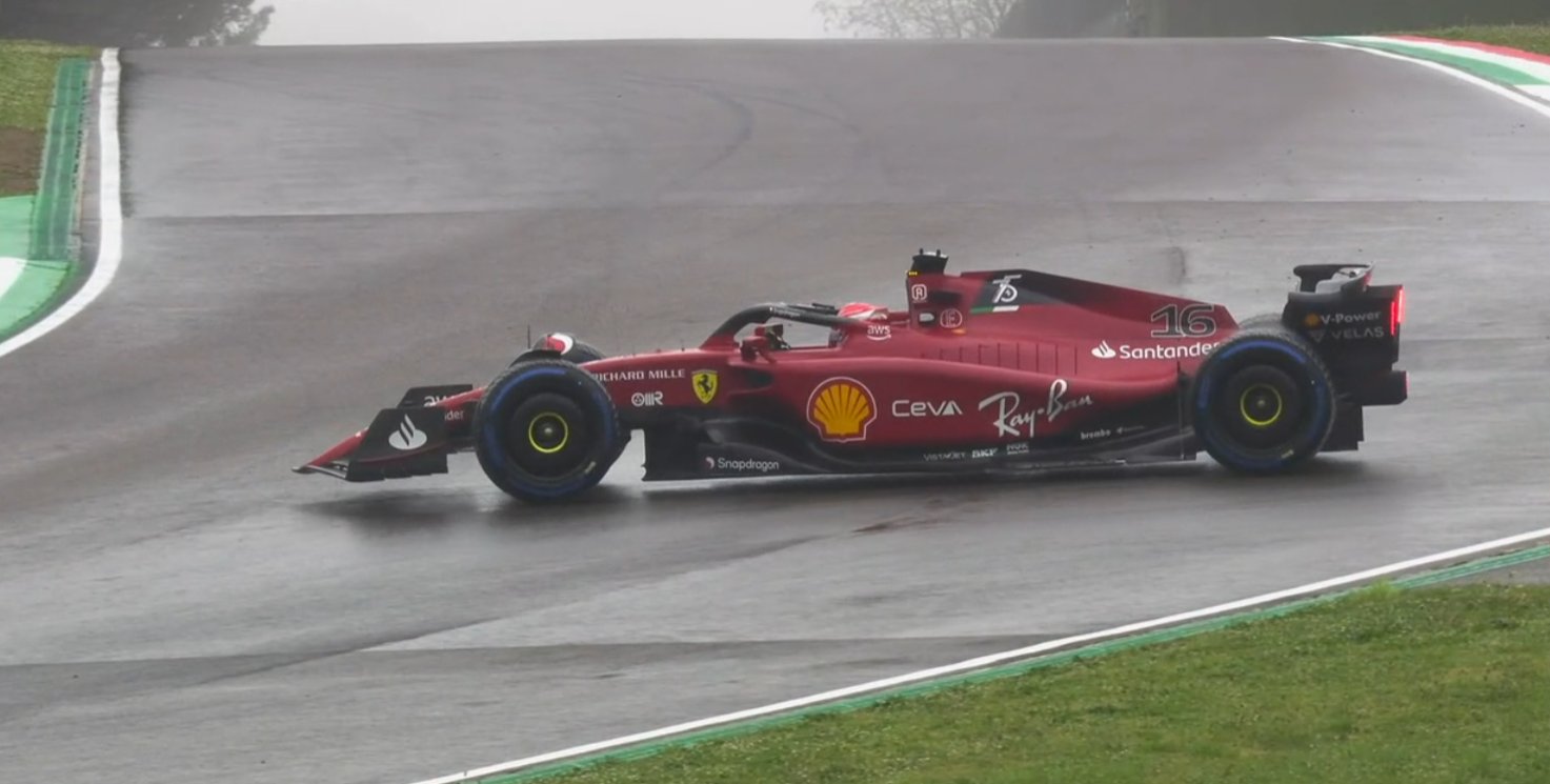 今天伊莫拉下起大雨,之前的F3和F2比赛都受到影响。大雨导致一练开始时赛道上有大量积水。随着车手在赛道上行驶,逐渐将积水排出,圈速也在后半段提升。最终勒克莱尔虽然多次打滑,但依旧以1:29.402的成绩排在第1,队友塞恩斯落后0.877排在第2,维斯塔潘第3。马格努森和舒马赫排在4、5名,另一位红牛车手佩雷兹第6。