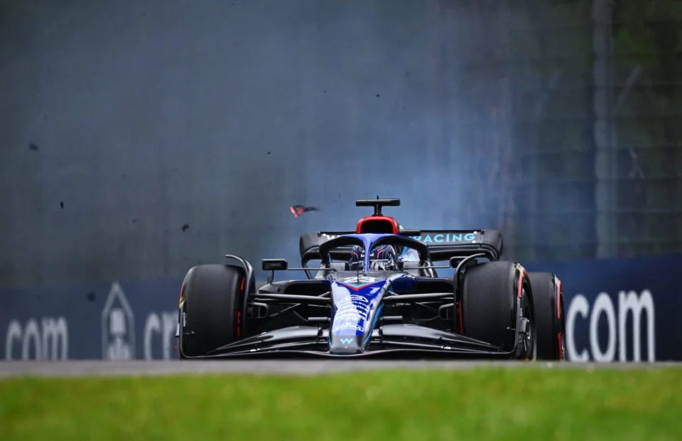 由于周五的练习赛中,阿尔本的赛车暴露出了后刹车难以起温的问题,因此最初预设的刹车偏移数值比往常要更偏向后轮,以便后轮刹车快速升温。然而在更换为软胎并显著提升机械抓地力后,阿尔本需要在弯前更大力地制动以削减额外能量。这导致后轮刹车比原先预计的更快升温,并迅速超过刹车盘能够承受的散热能力。在阿尔本的第一个飞驰圈过程中,由于刹车热管理失效而导致起火。轮辋则在高温下形变并最终引发爆胎。