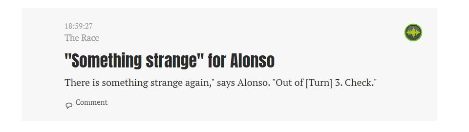 F1知名网站The Race放出阿隆索TR:我的车好像又有点奇怪。