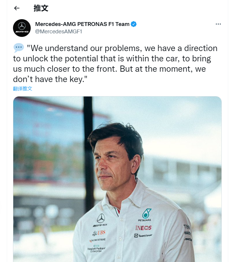 沃尔夫:“我们明白我们的问题所在,我们有一个大致的前进方向,可以将车的潜力完全激发出来,并帮助我们提高成绩。但就目前而言,我们还没有掌握其中的方法。”