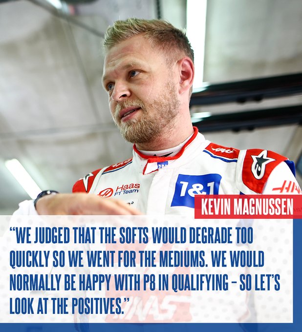 不过,马格努森第八名的成绩还是为车队带回了积分,舒马赫也以第十名越过了终点线。马格努森补充说:“能拿分很好,在决定发车顺序的比赛中我们也很高兴能排在第八位。当然如果从积极的方面看,我们两个都能在正赛上前十开始,希望我们能在正赛中换上合适的轮胎,多拿点分。”