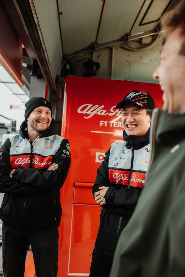 距比赛开始还有2小时,周冠宇和博塔斯心情不错!
