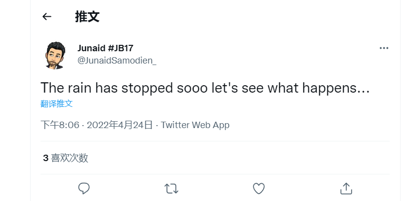 知名F1记者Junaid:“雨已经停了!让我看看之后的比赛会怎样。”