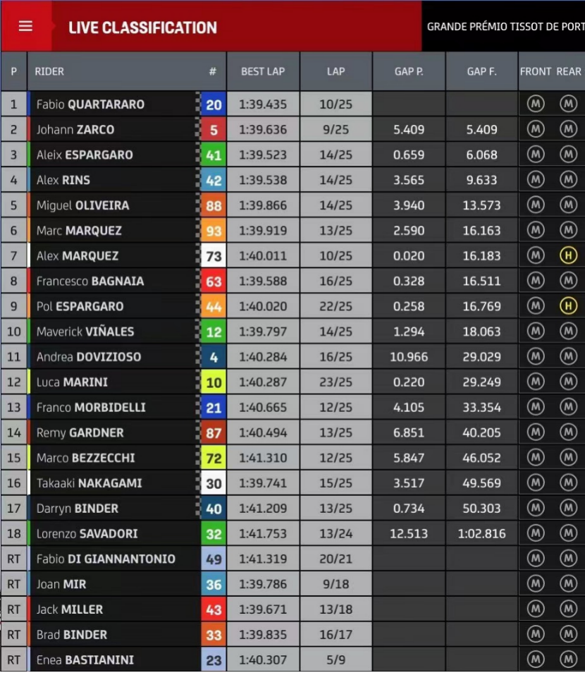 在刚刚结束的MotoGP葡萄牙站的比赛当中,雅马哈车队卫冕冠军夸塔拉罗夺冠,Pramac杜卡迪车队扎科取得第二名,Aprilia车队车手阿斯帕加罗再度登上领奖台。