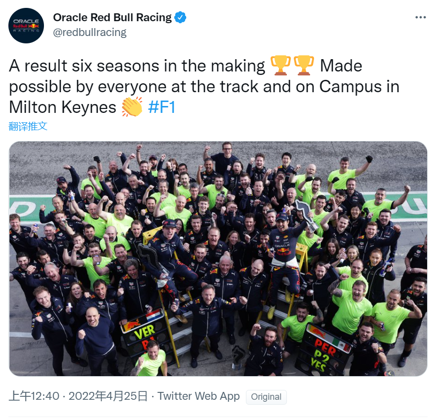 红牛官推:努力了六个赛季的成果。感谢赛道上和总部里的每一个人让冠军成为可能。