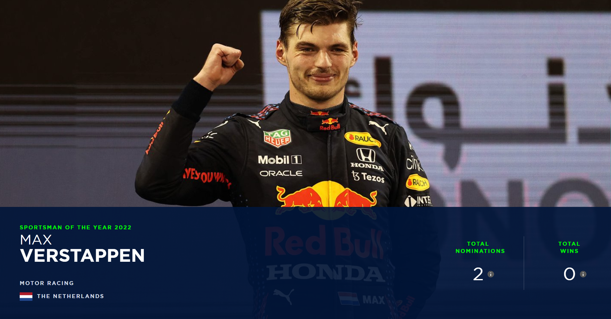 维斯塔潘一共获得过2次提名,目前还未获过奖。