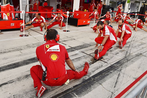 当然实战才是更重要的,在每一个比赛周末,官方都会有固定的时间让技师们进行进站练习。在练习赛期间你可以看到车手和车队在进行进站演练,因为每一场比赛的维修区布局,停车位置,维修区路面情况都是有所不同的。