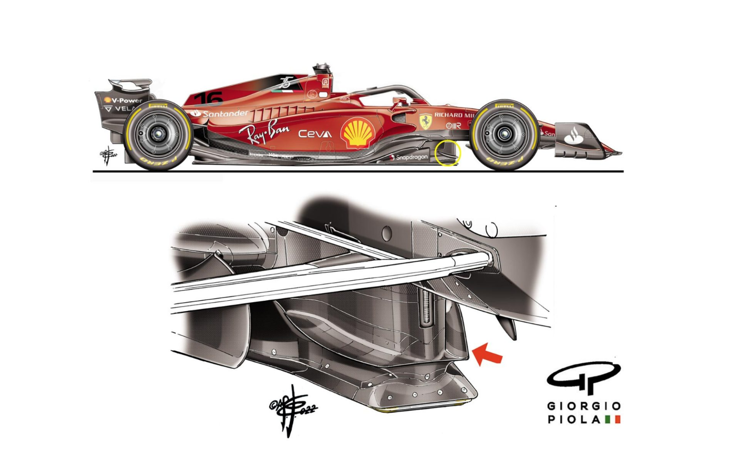(红牛底板新增了在龙骨分离器上加了一个小翼片,如上面的图片所示,与法拉利的设计十分相似)