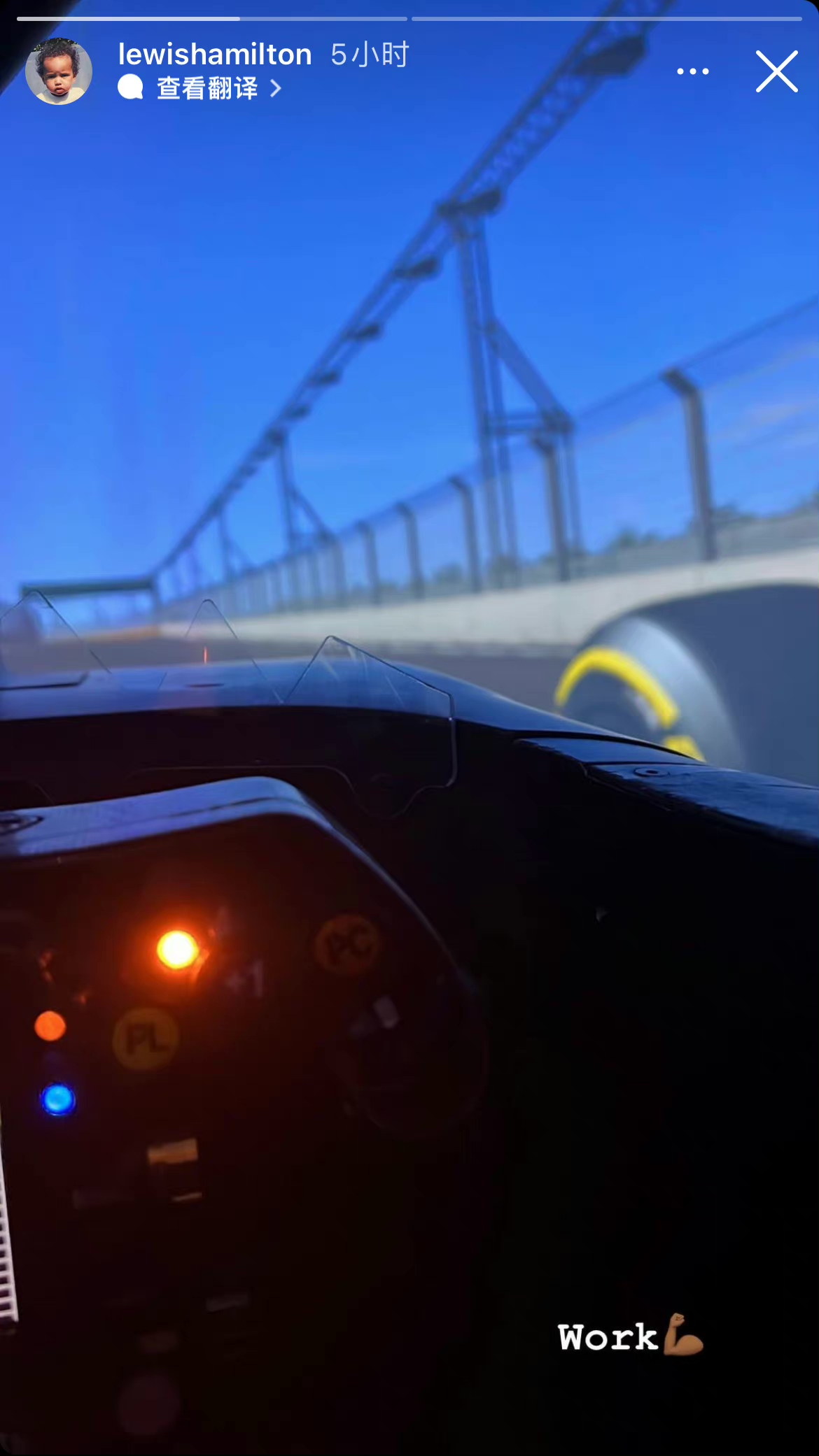 25日,汉密尔顿在个人社交媒体上发布限时动态图片,图片上他正在用模拟器驾驶沙特吉达赛道,并配文“Work(努力工作中)”。