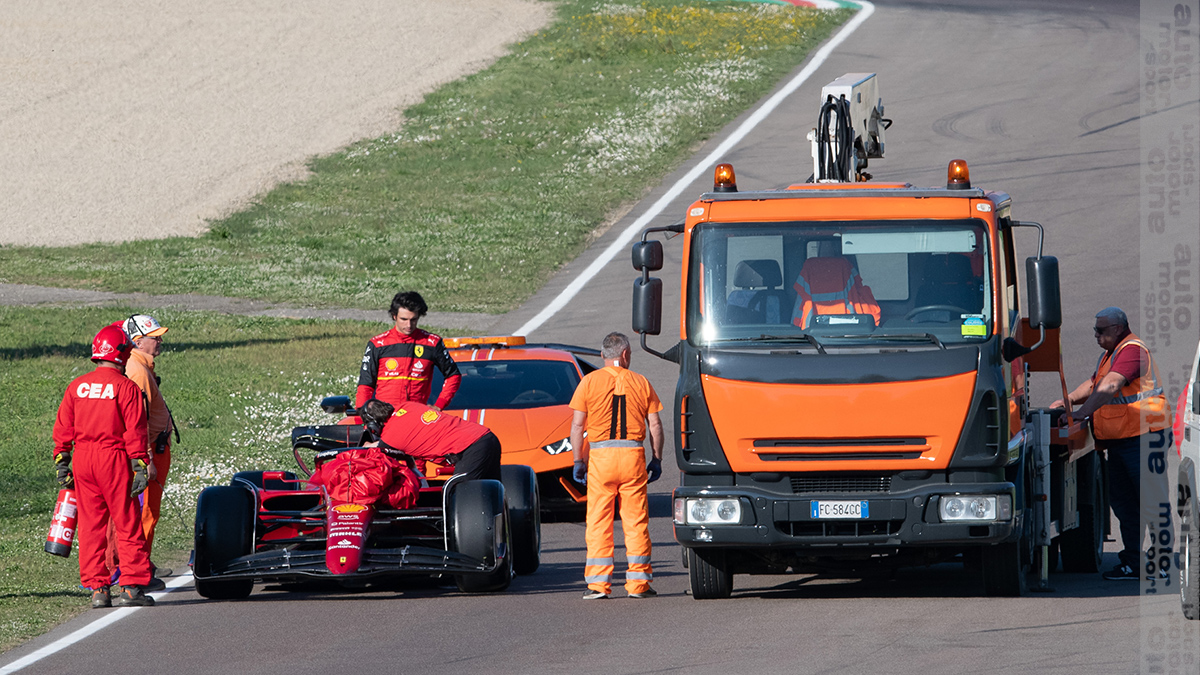在昨天进行的2023倍耐力轮胎测试中,塞恩斯的赛车似乎又遇到了问题,停在赛道上,他最后乘坐安全车离开。