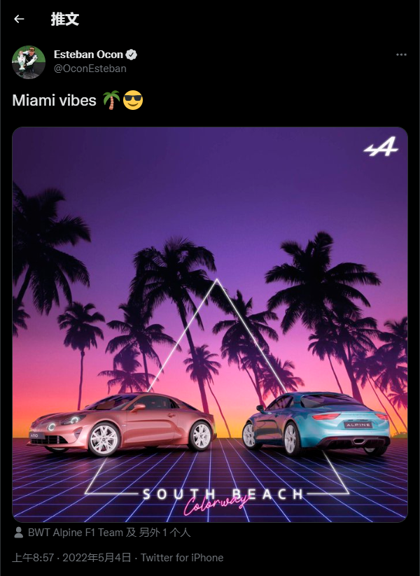 奥康更新个人社交媒体,并配文写道:迈阿密风格!