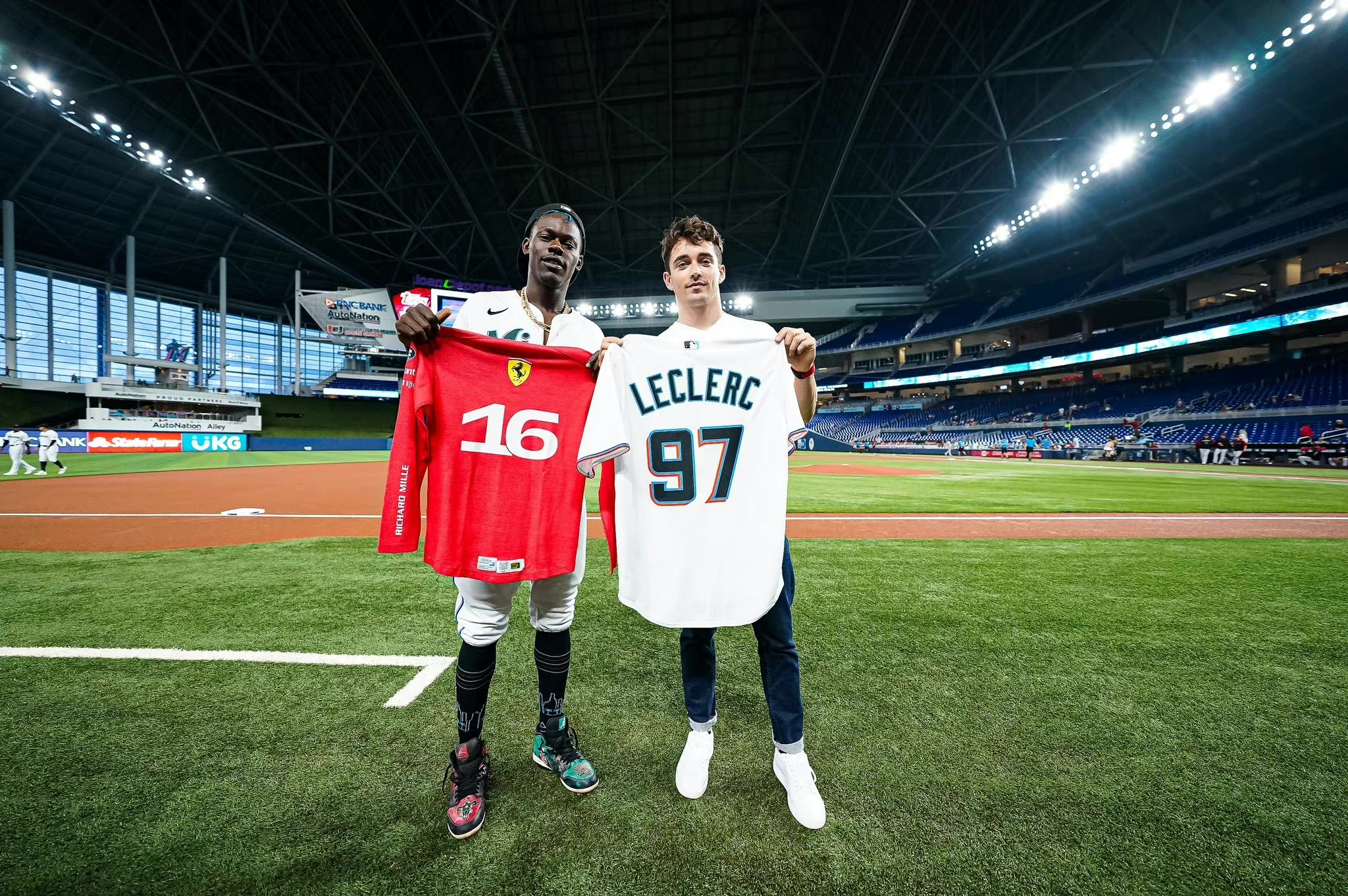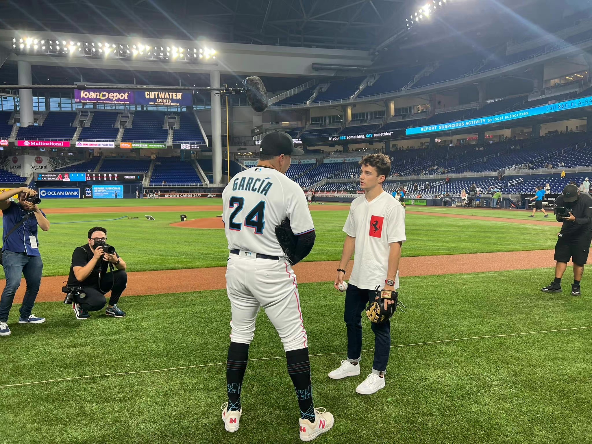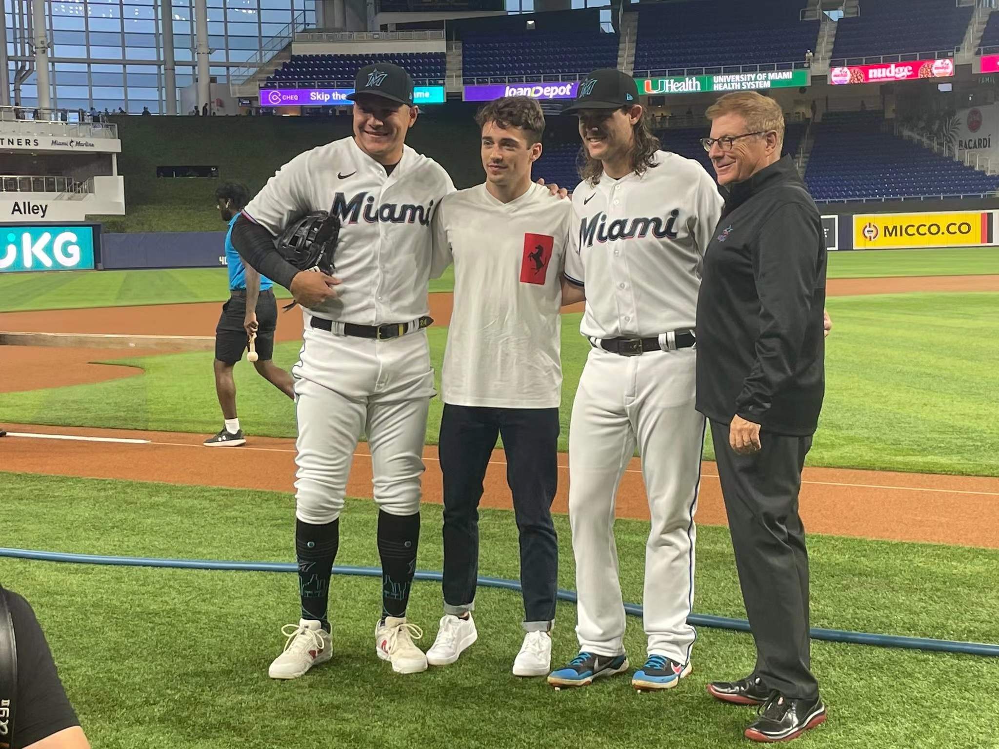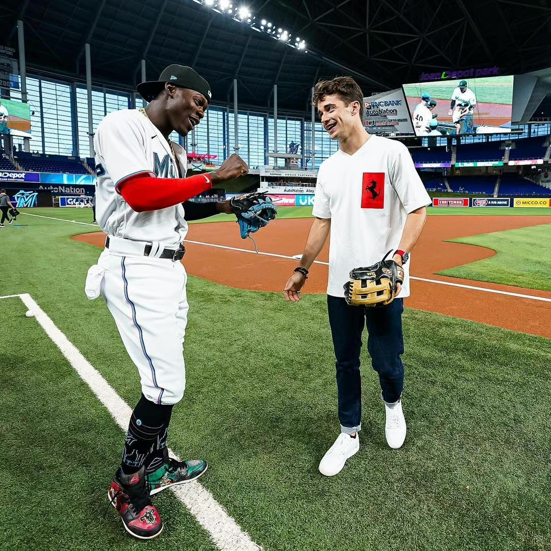 勒克莱尔来到MLB迈阿密马林鱼队比赛现场