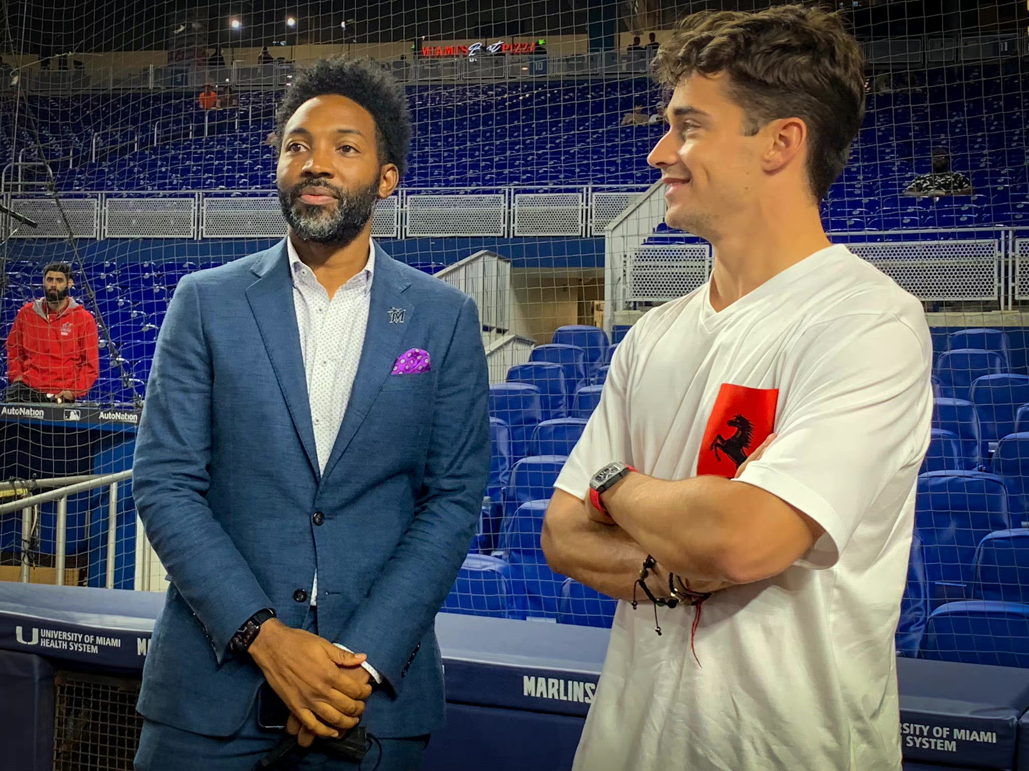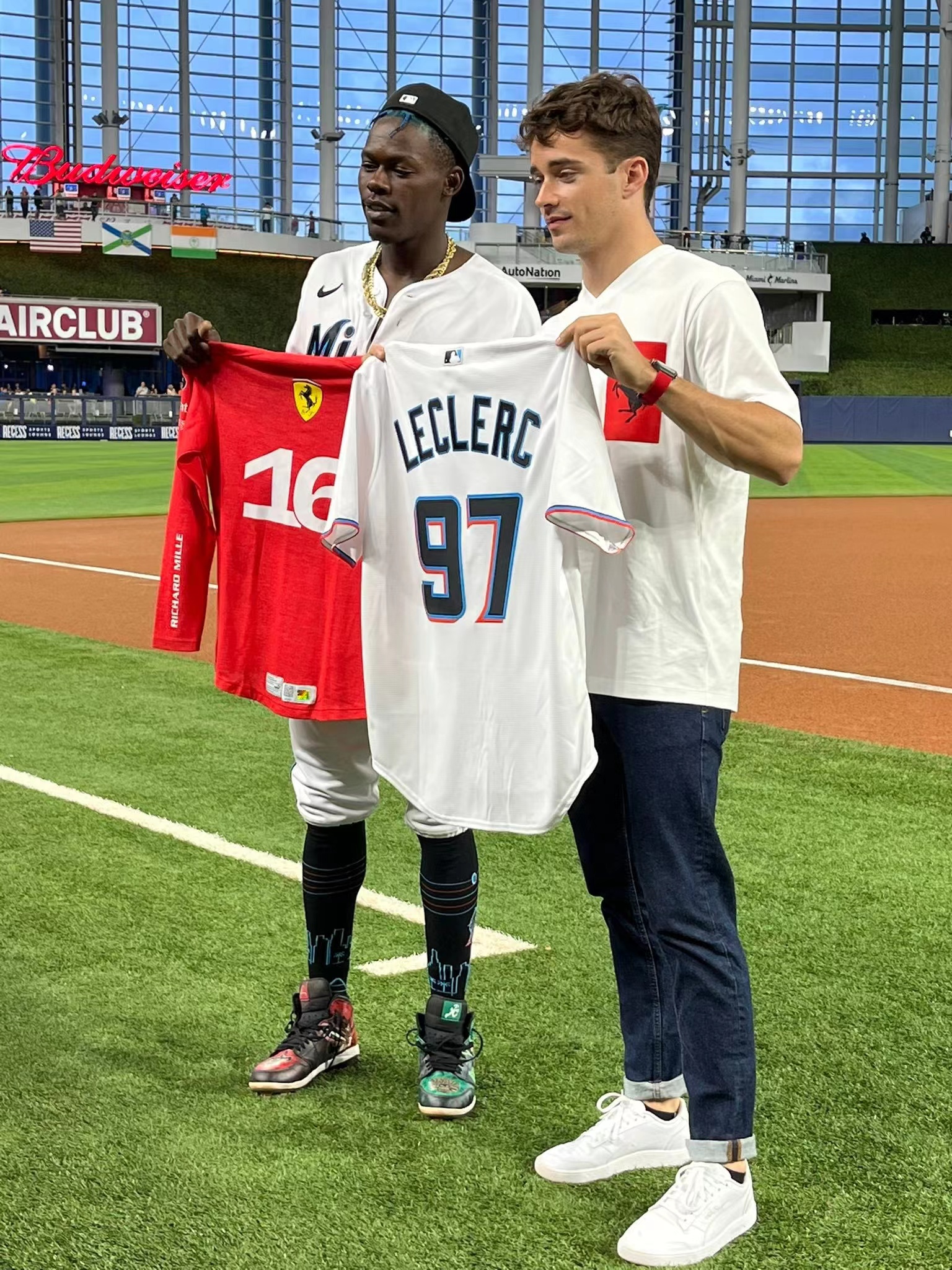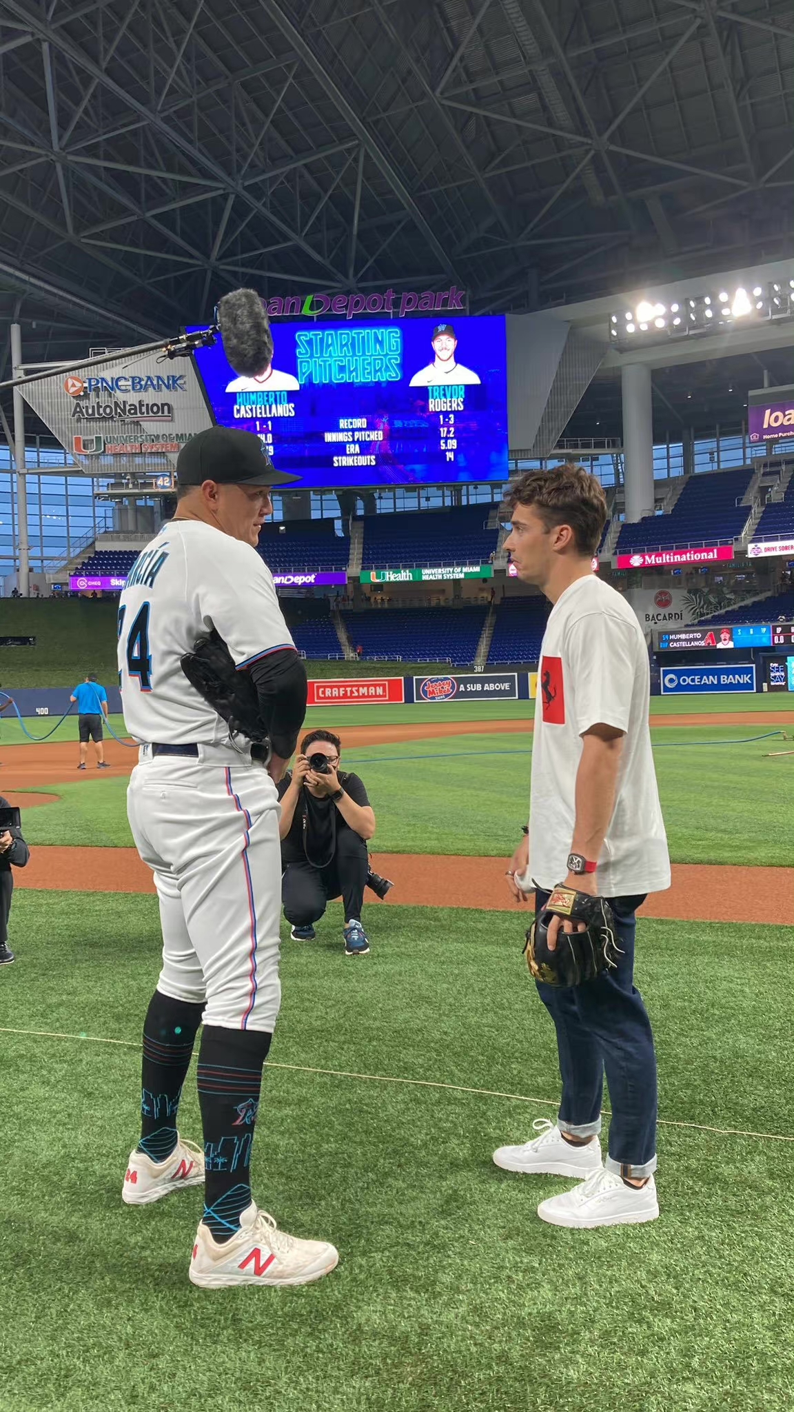 勒克莱尔来到MLB迈阿密马林鱼队比赛现场