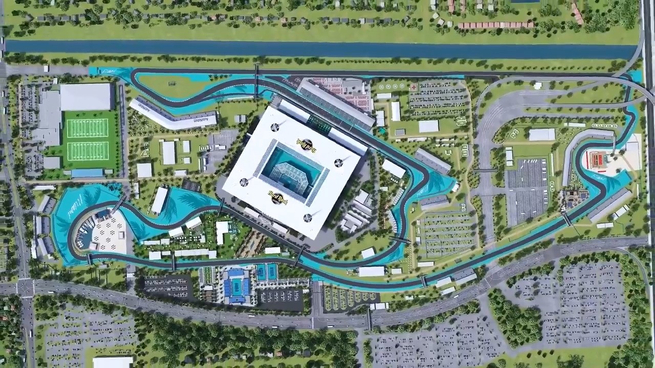 赛道共设19个弯角和3条较长的直路,预计圈速1分35秒左右。尽管迈阿密本身沿着大西洋海岸,但赛道距离海岸线还有一段距离。因此整条赛道其中最具特色的是在7号弯心的陆地上建起了游艇俱乐部,它将南佛罗里达海滩风情融入了几十艘游艇,为观赛的贵宾带来了别样体验。