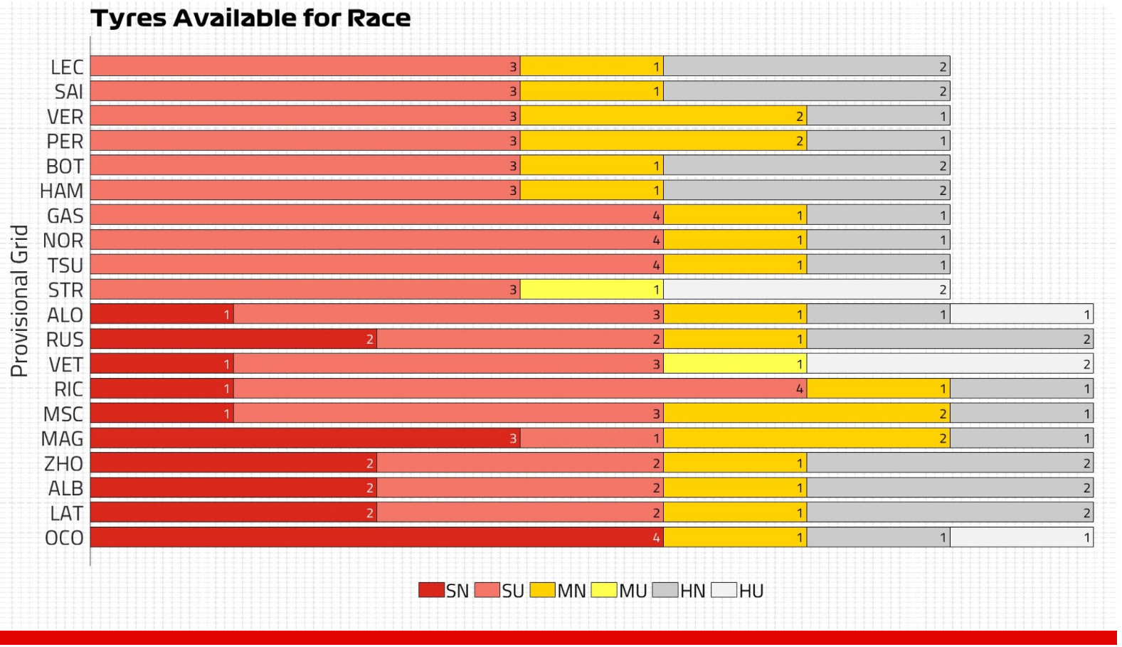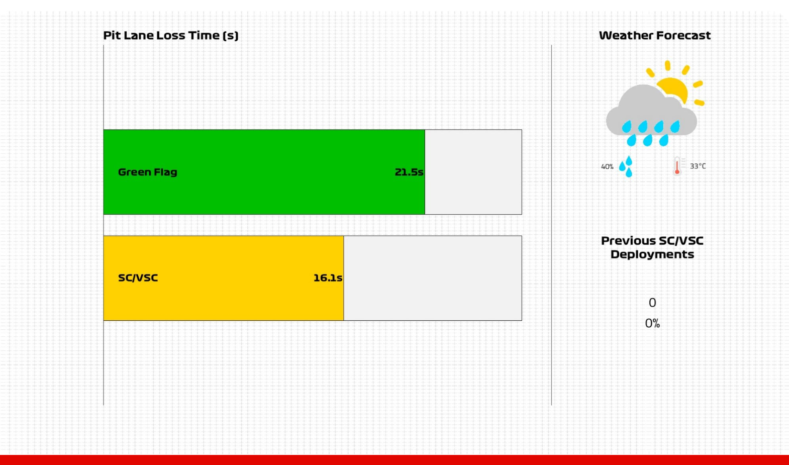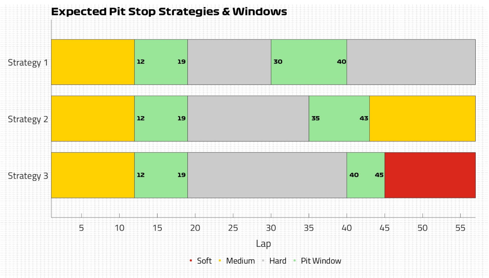 考虑到赛道表面带来的磨损,两停策略在现阶段看起来更胜一筹。车手使用中性胎起步,以在第一阶段拥有更好的性能。第一个进站窗口将在第13和18圈之间打开,车手们可以进站换上硬胎,如果他们轮胎还有剩余,那么他们可以考虑在第30和40圈之间进行三停,再换一套新硬胎。