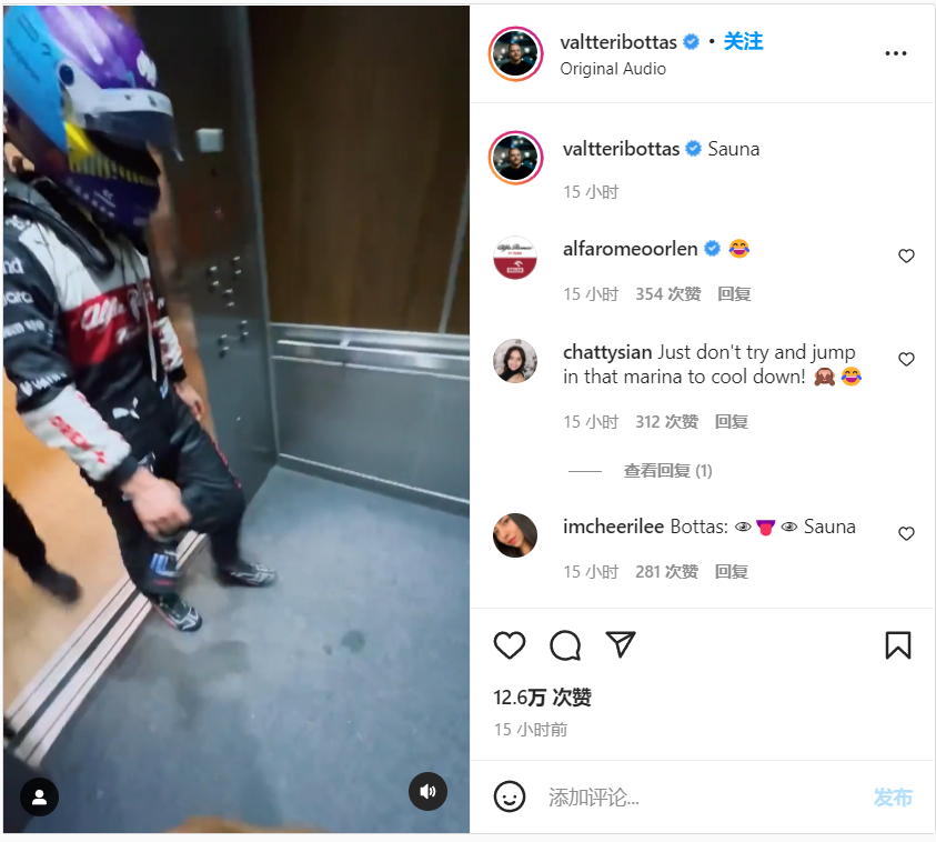 博塔斯在自己的Ins上发了一个小视频,视频里博塔斯就说了一个词:“Sauna(桑拿)”。可见迈阿密赛道温度之高,不论是对车手还是赛道都是一次考验。