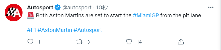 Autosport证实阿斯顿马丁将从维修区起步。