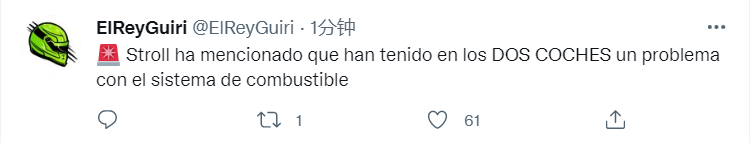 据博主爆料,斯托尔向媒体透露赛车遇到了燃油问题,两辆车都有。