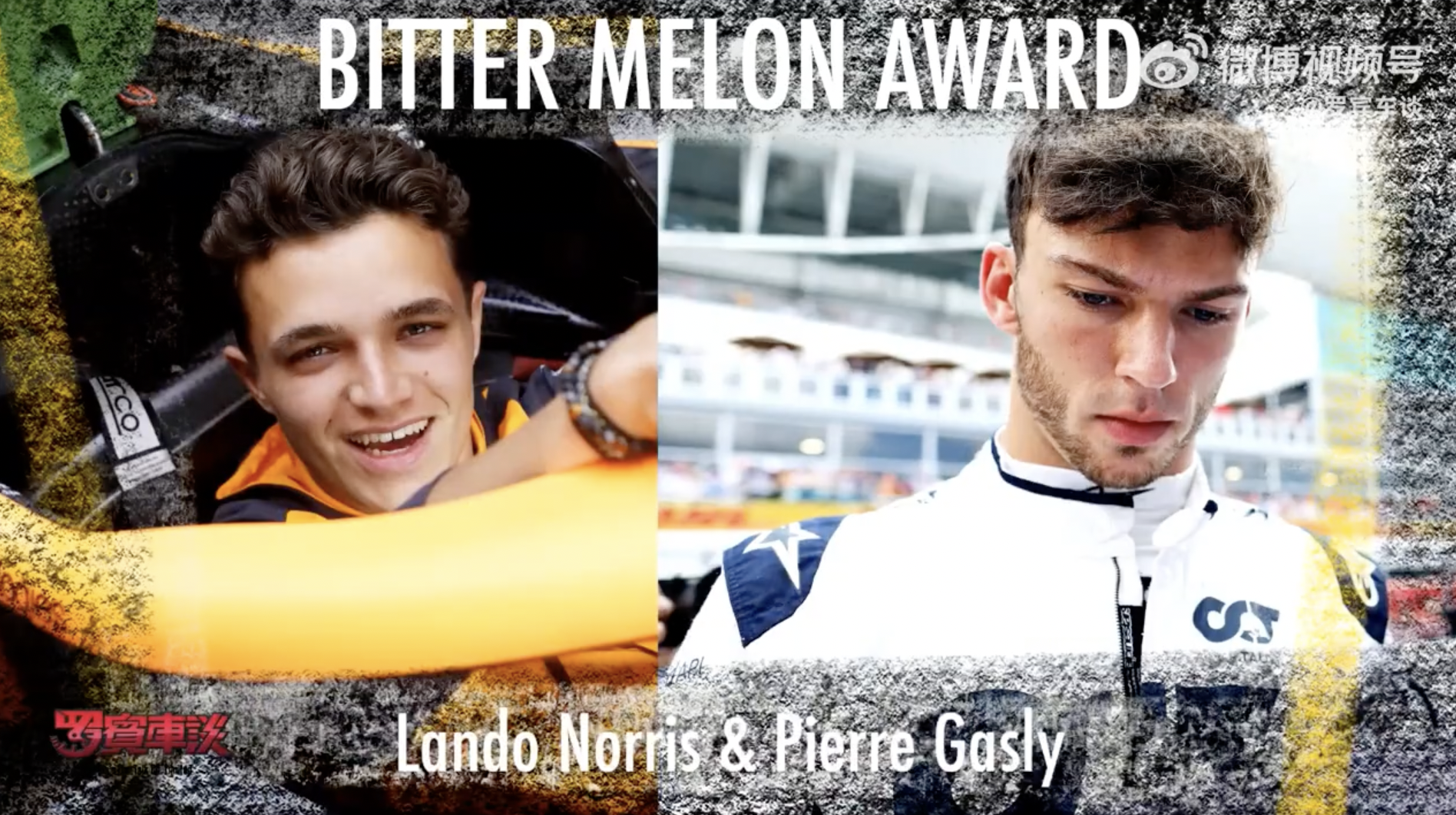 加斯利从练习赛起就多次出现失误,正赛第40圈,先是和阿隆索发生擦碰,就在他从后视镜查看赛车“伤势”时,紧接着就和诺里斯就碰到一起。但诺里斯又招谁惹谁了,只想安安静静超个车,没想到轮胎都被撞掉了,幸好飞出的轮胎没有再次伤人。于是,罗宾就把本场苦瓜奖同时颁给他们俩。