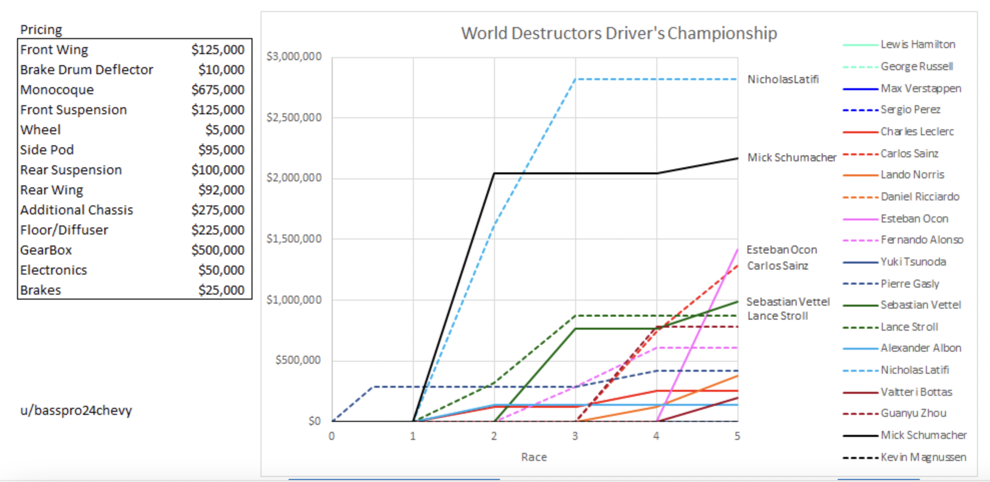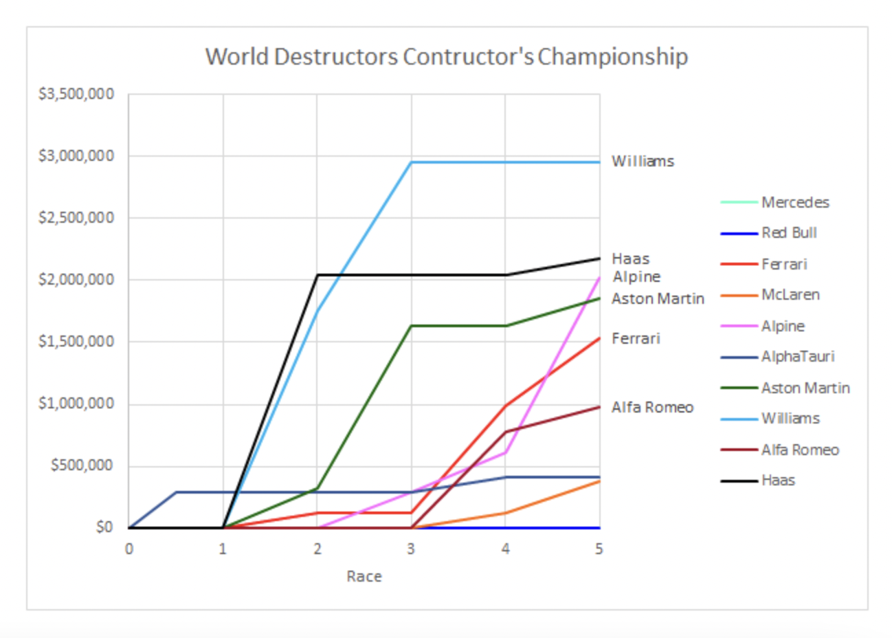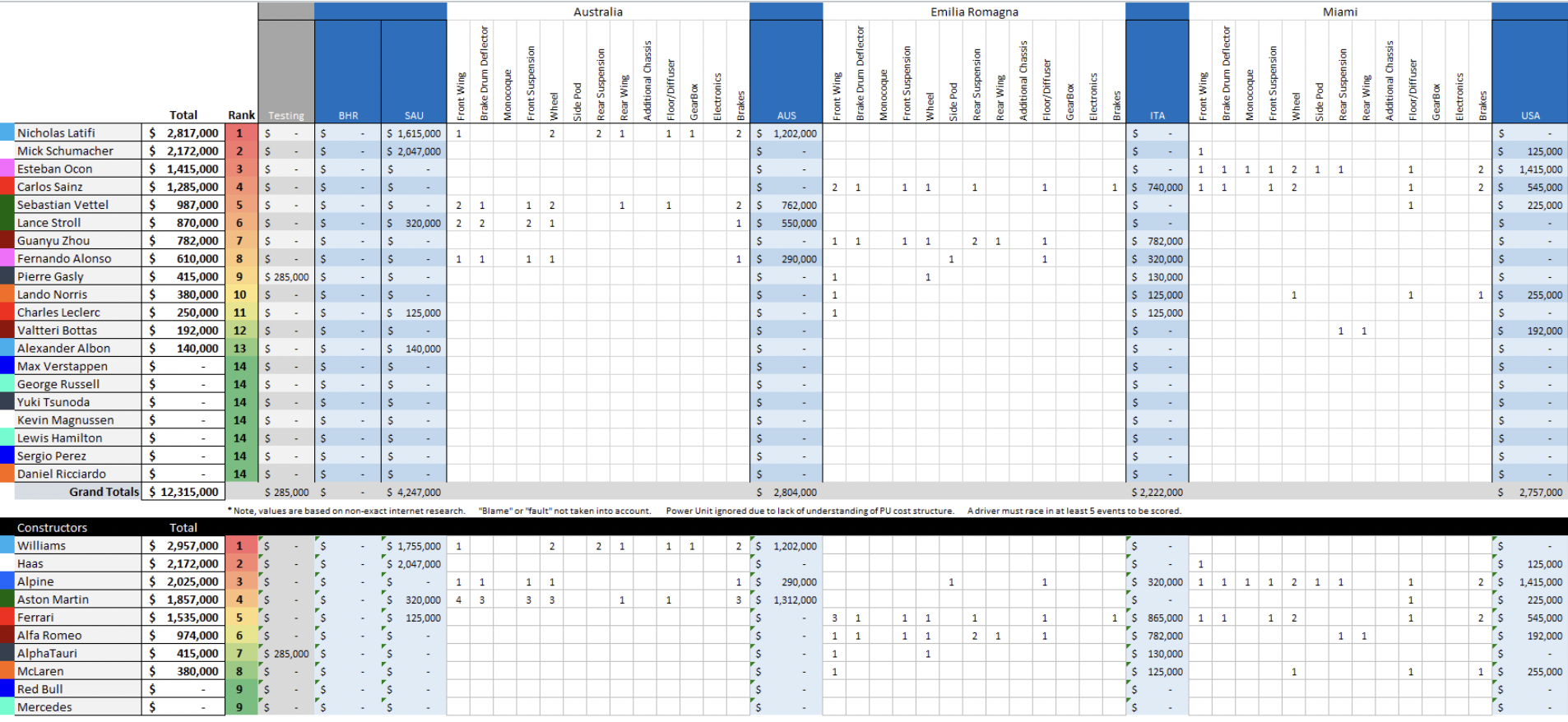 车队方面,Alpine车队的修车总支出也因此上到第三,车队累计共花费2025000美元(约人民币1368万)。