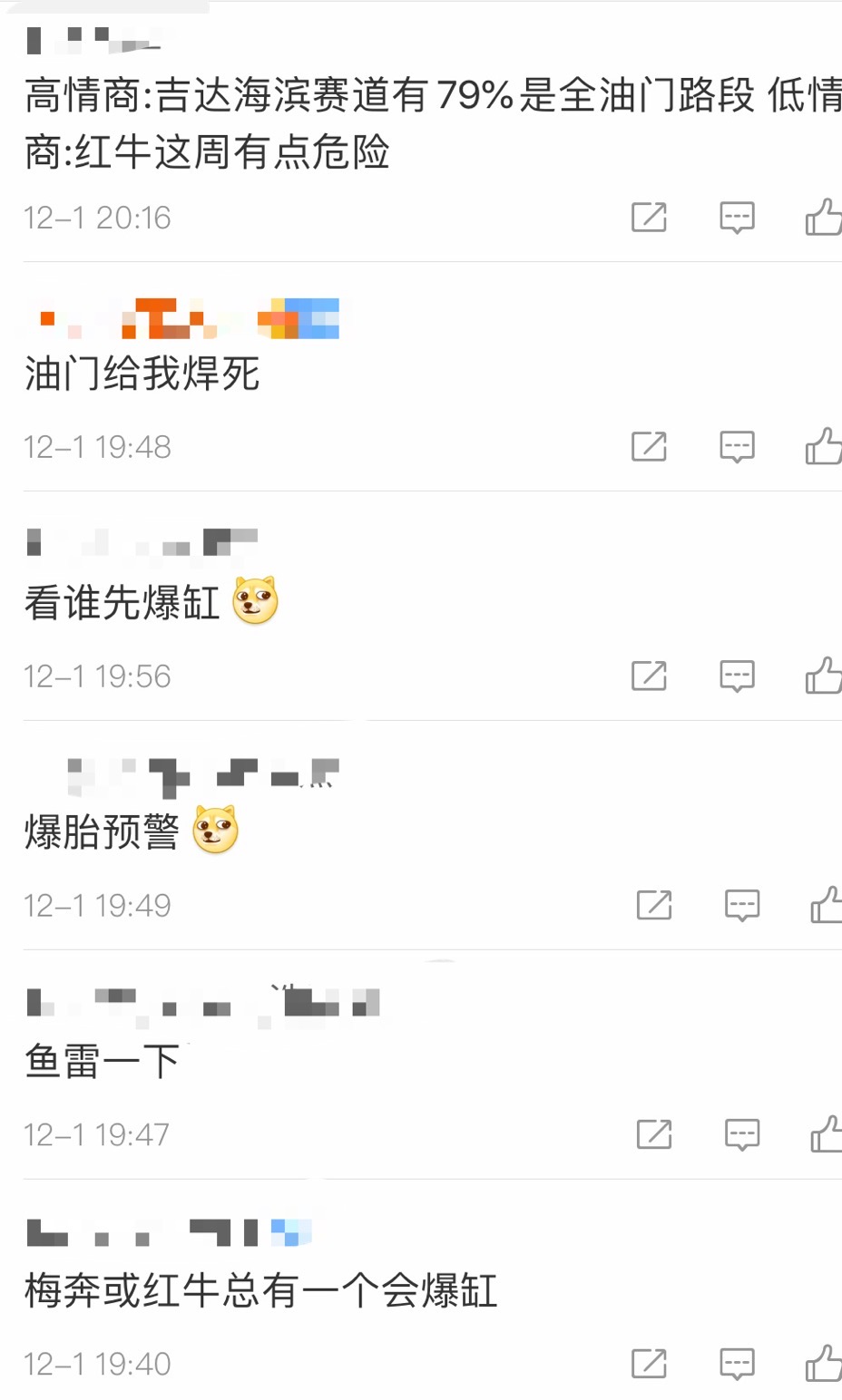 这个数据随后在互联网上引起了热议,评论区分为两类人:一类提前祝贺汉密尔顿夺冠,一类预测比赛中会出现久违的爆缸。