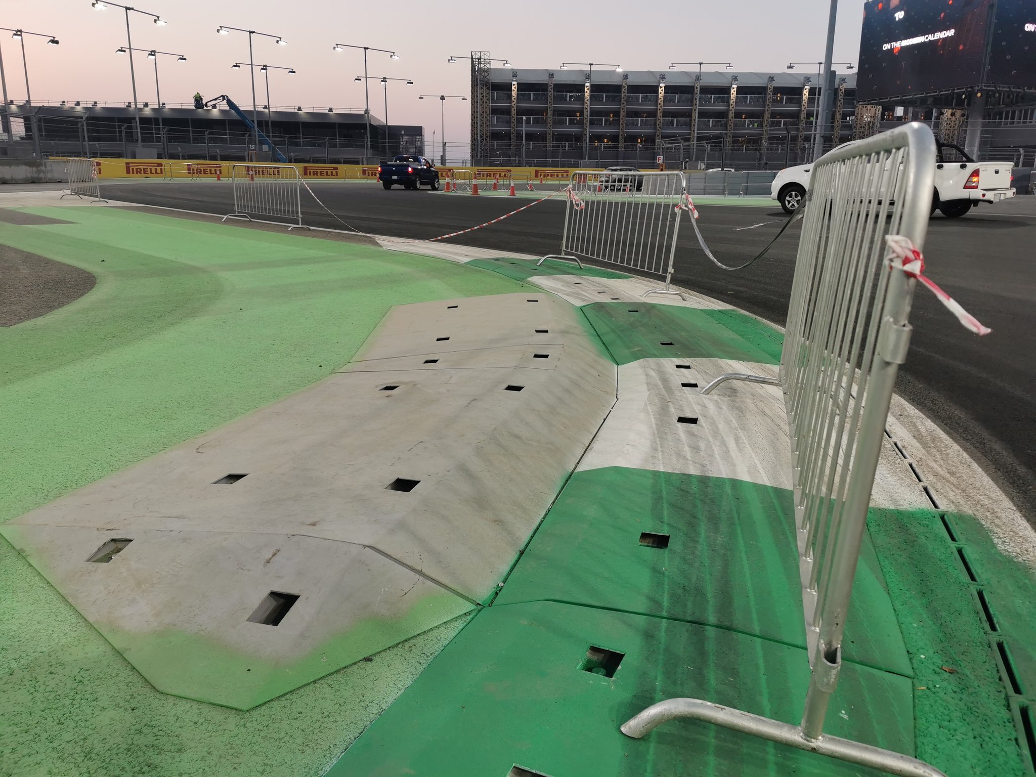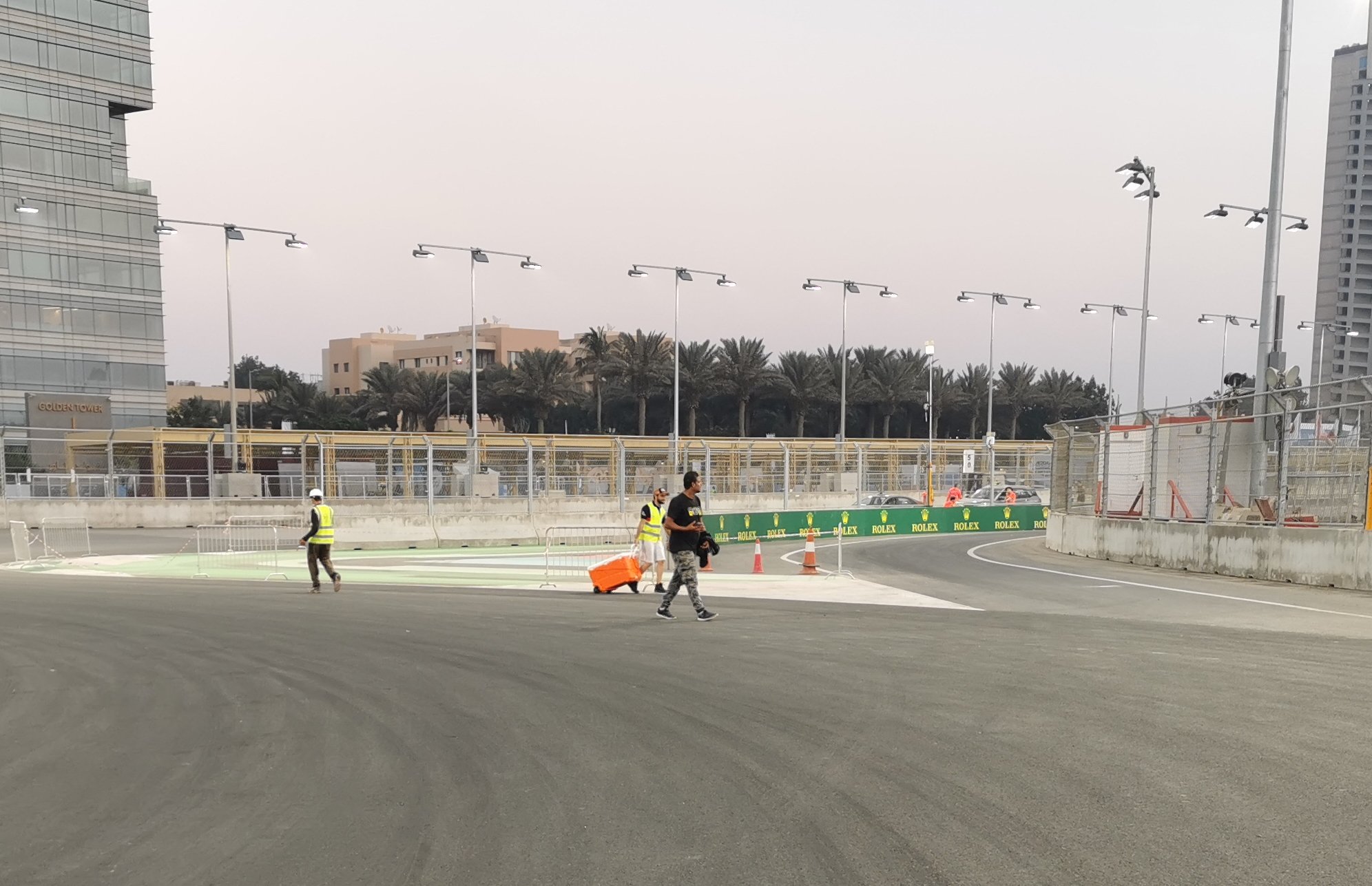 赛道的沥青刚刚铺设完成,表面并非完全均匀,比2020年土耳其站的情况好得多。工作人员正在清洗路面,一切都井然有序。
