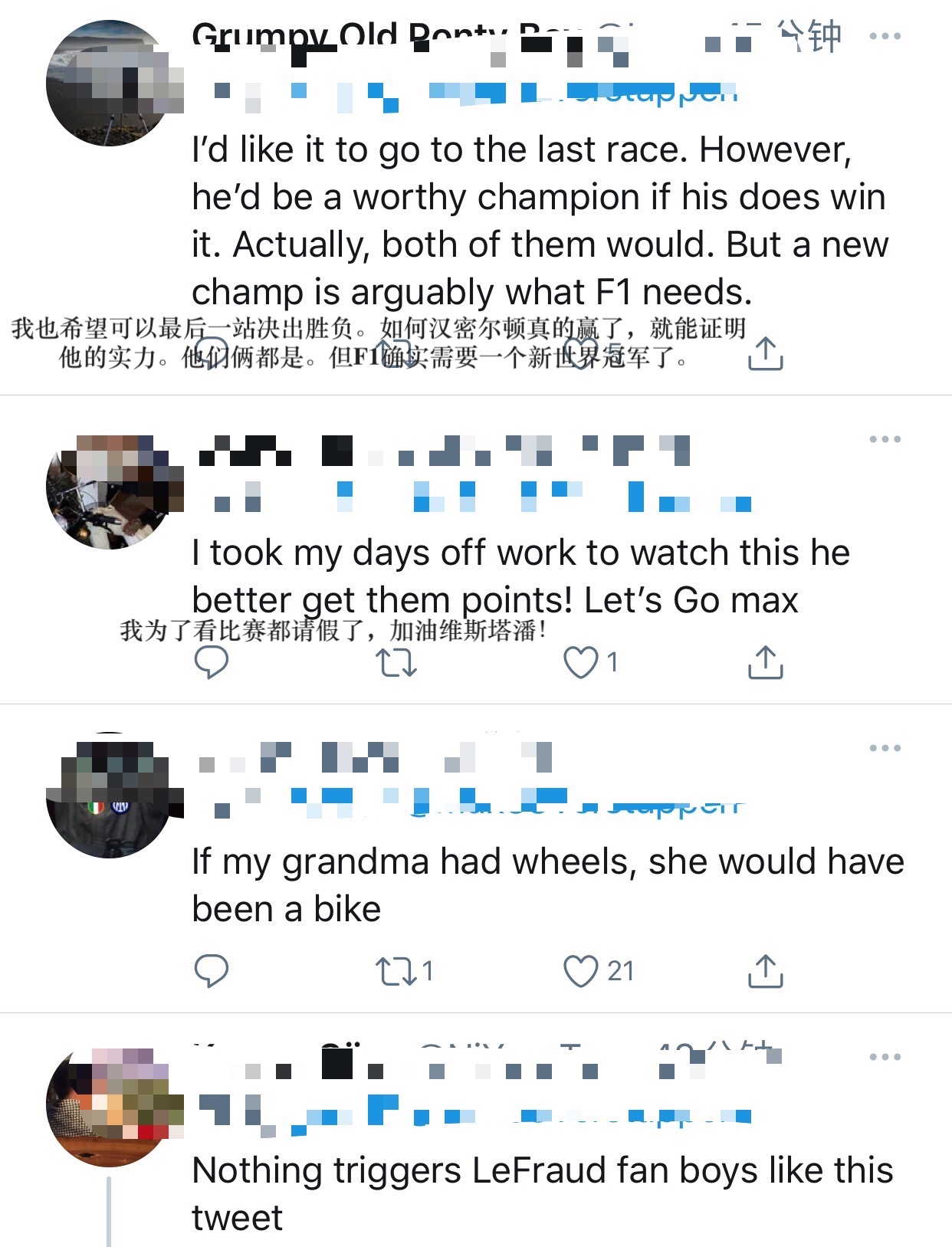 临近赛季收官,各大车迷群体都开始炒作两人胶着的斗争形势,2021年末的互联网流量密码实属是汉密尔顿和维斯塔潘了。