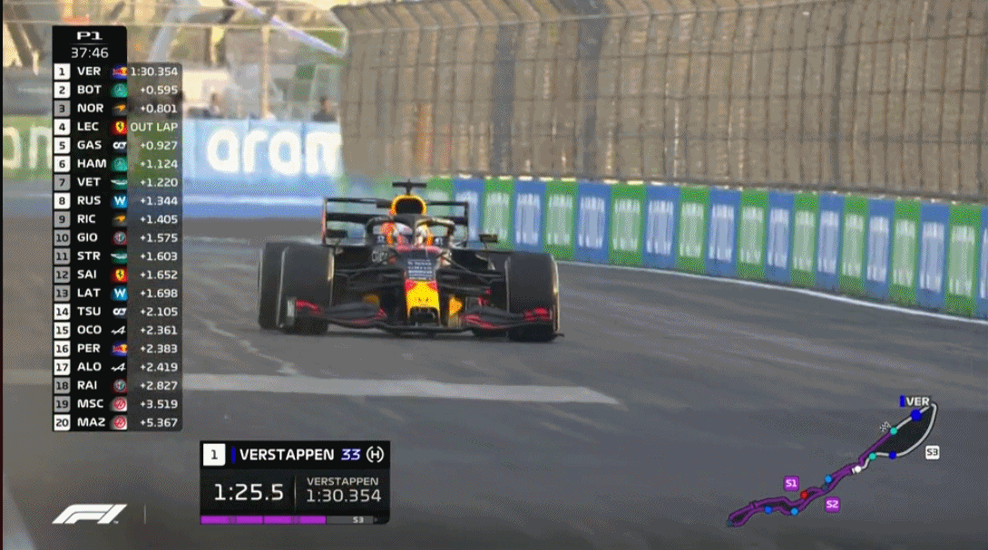 一练前半段,维斯塔潘连续刷紫
