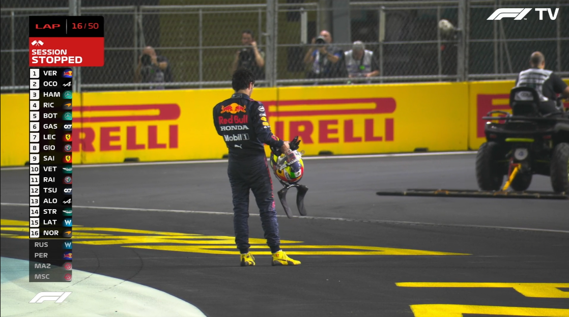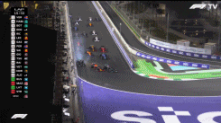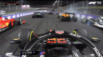 后方的马泽平、拉塞尔、佩雷兹撞车,再次引发红旗。