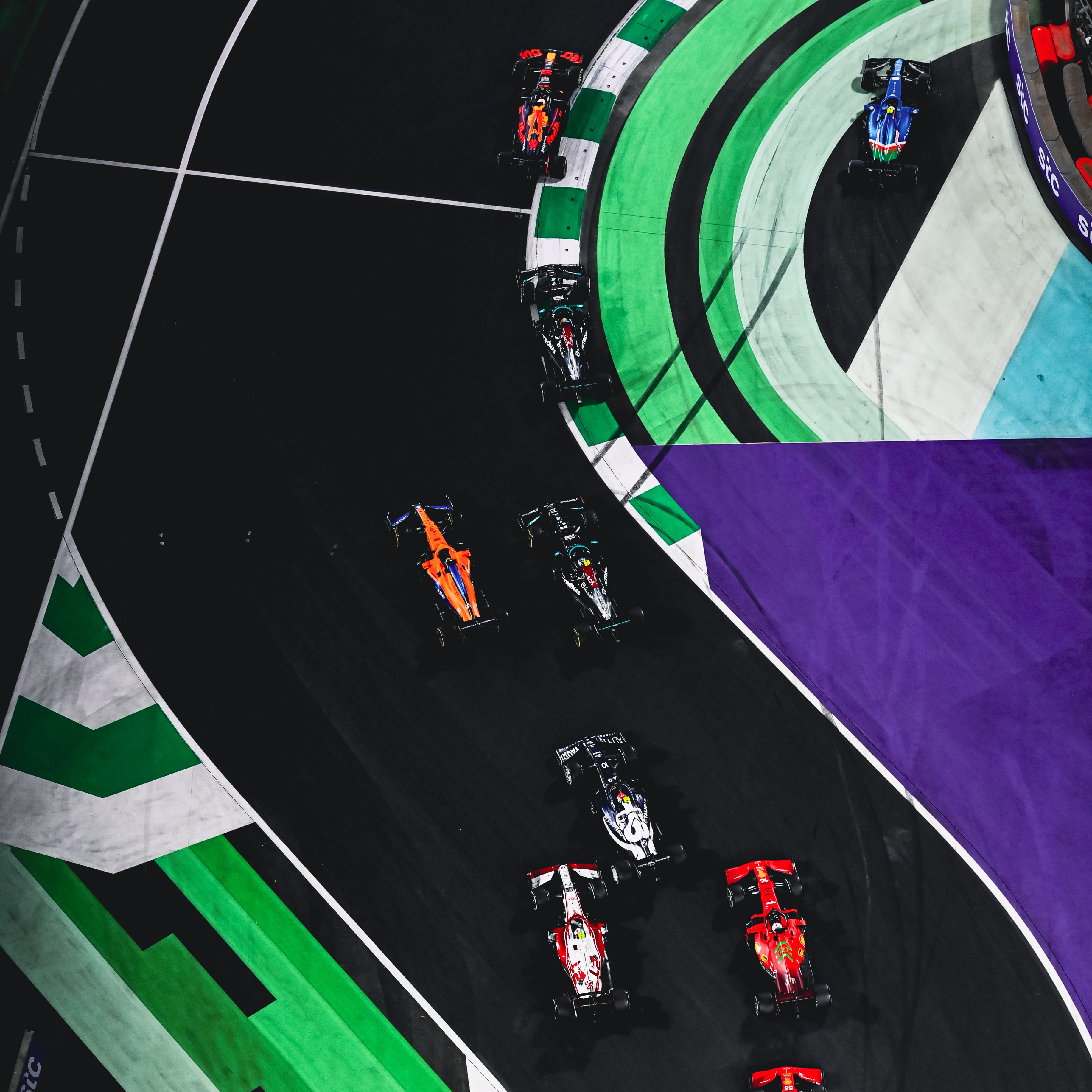奥康第一起步,汉密尔顿第二。但起跑时汉密尔顿和奥康有擦碰,维斯塔潘趁机超到第一。