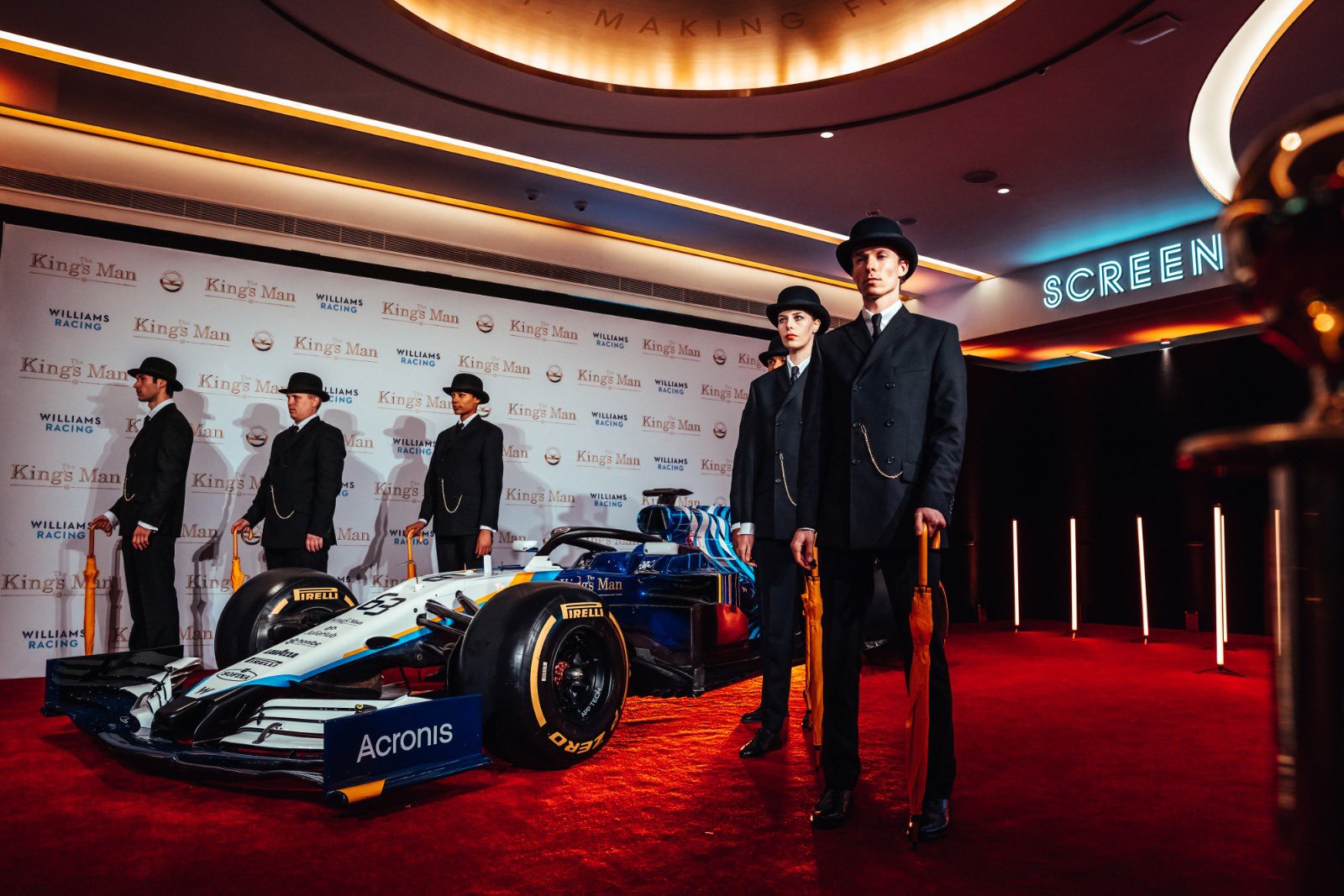 在首映现场还展出了贴有电影标识的威廉姆斯赛车。据悉,赛车会被运回阿布扎比参加收官战的比赛。在收官战中,两位威廉姆斯赛车前鼻翼、底盘侧面和Halo上都会贴上电影的标志。