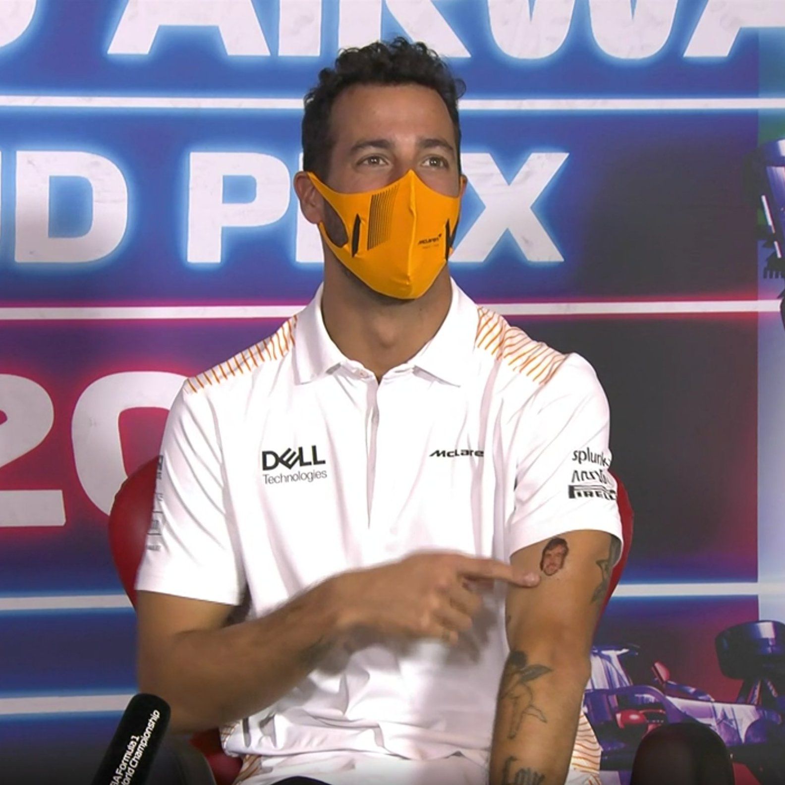 里卡多:我们喝了几杯红酒之后,阿隆索给我贴上了一个他头像的纹身贴,很好看。