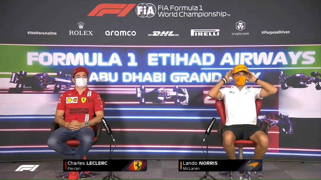今天的车手赛前新闻发布会上,兰多·诺里斯和夏尔·勒克莱尔被分在了一组。