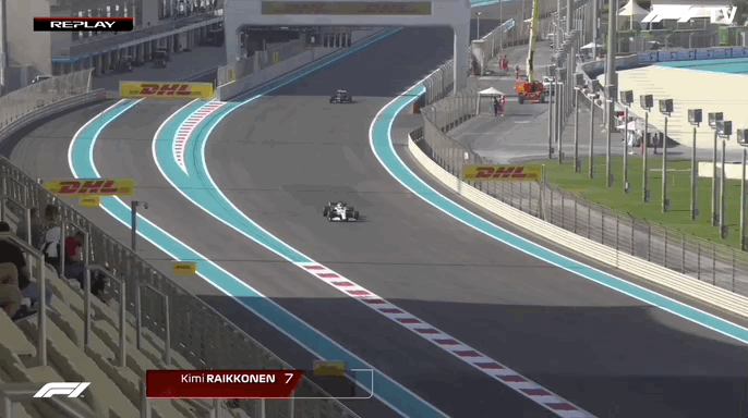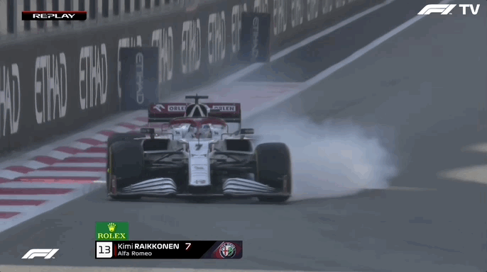 Spin+锁死,莱科宁的一练失误颇多,远远的看上去赛车涂装有点像哈斯车队?