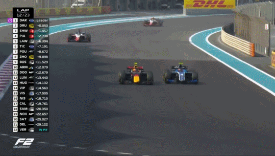第12圈,达鲁瓦拉和德鲁戈维奇在9-12弯展开精彩缠斗,印度车手依然守住领先。