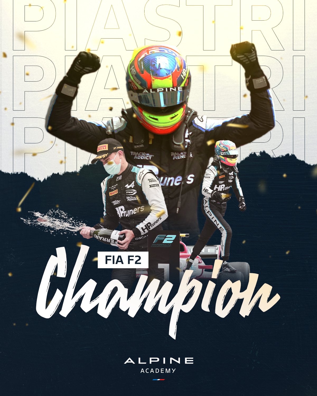 凭借着持续稳定的积分斩获,皮亚斯特里在赛季半程就取得了积分榜领跑的位置。并保持连续5场比赛取得杆位,以及连续6场周日正赛登上领奖台的稳定战绩。在本周的阿布扎比站第一回合冲刺赛后提前2回合锁定世界冠军。成为拉塞尔之后又一位在F2新秀赛季夺冠的车手。