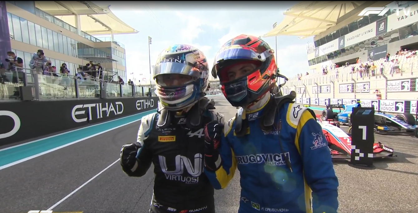 F2阿布扎比站正赛在17:00正式开始,周冠宇在第三名起步,最终拿到亚军。不过年度总积分榜上,周冠宇没能超越舒瓦茨曼,名列第三。