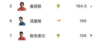进入最后一战之前,勒克莱尔在车手积分榜上排在第5。比赛结束后,他却被队友塞恩斯和诺里斯两人反超。