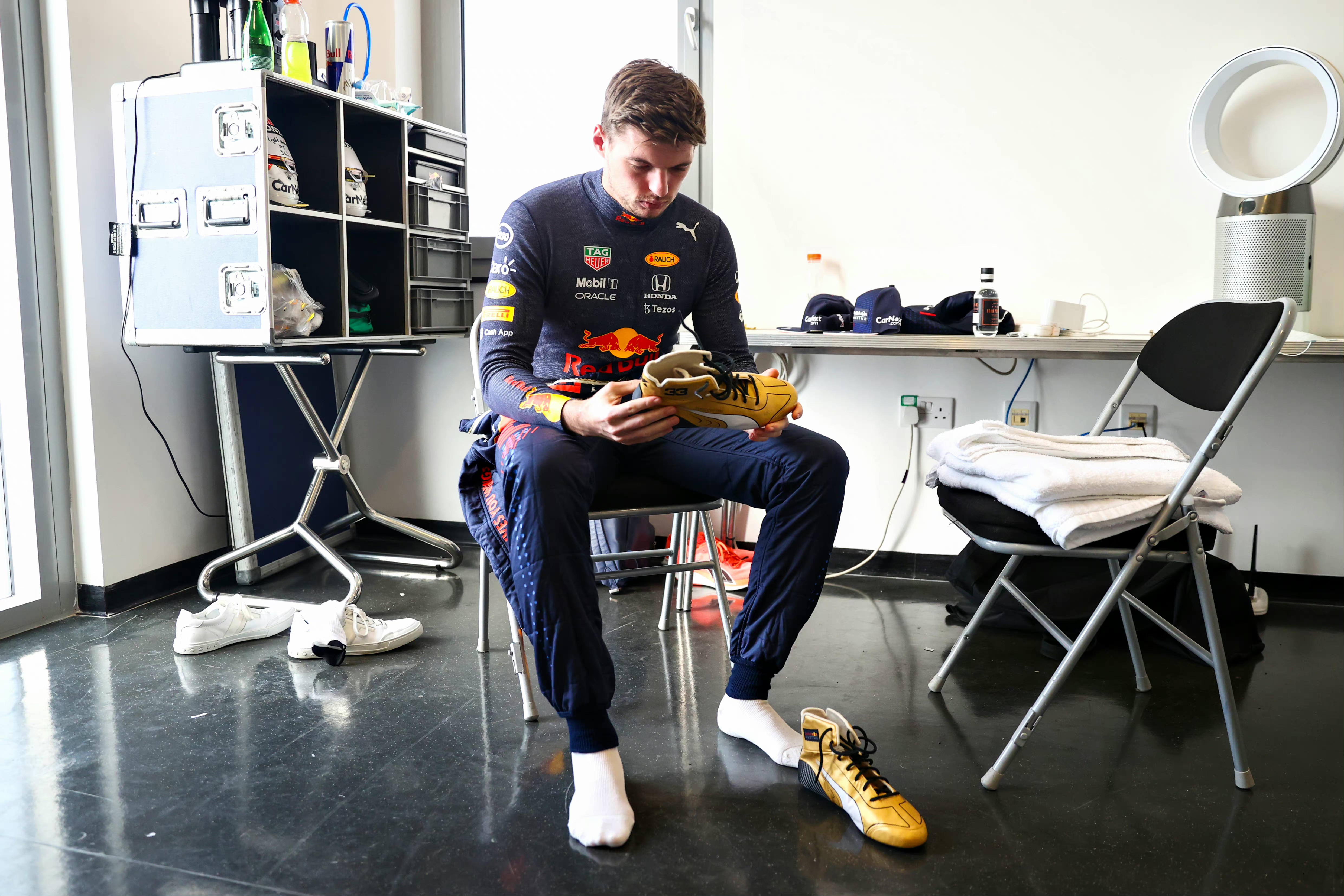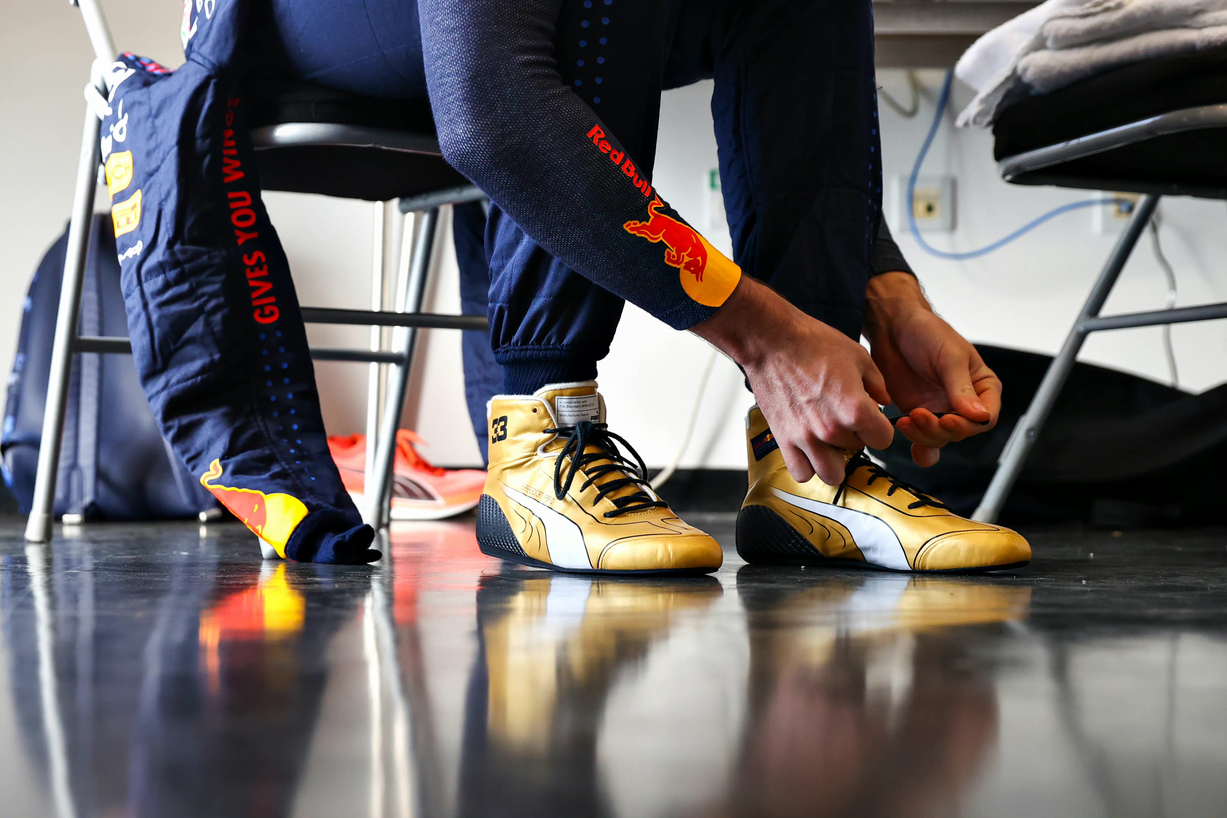 夺取世界冠军之后,彪马运动装备为维斯塔潘专门制作了一双金色的赛车鞋,供他在今天举行的阿布扎比季后测试上使用。