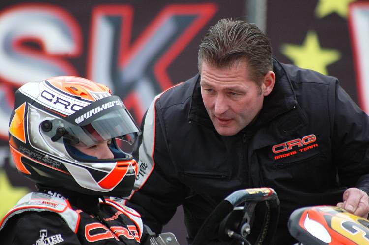 维斯塔潘在他的卡丁车时期一直都是这样边看爸爸修车边跑比赛的。当维斯塔潘父子加入Pex车队(CRG的客户)之后,这对父子依然主导着他们自己赛车的调教和维护工作,老维斯塔潘依然会自己动手准备引擎。