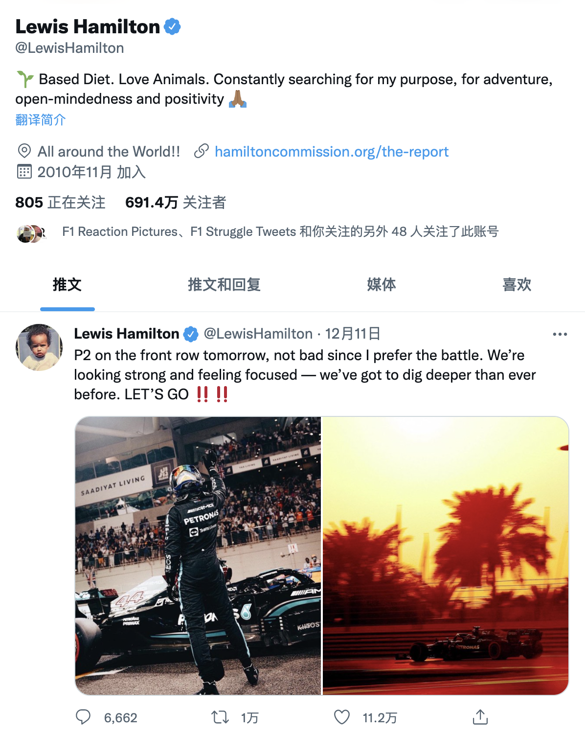汉密尔顿社交媒体上最后一条内容的发布时间,也是上周六,也就是排位赛结束之后。