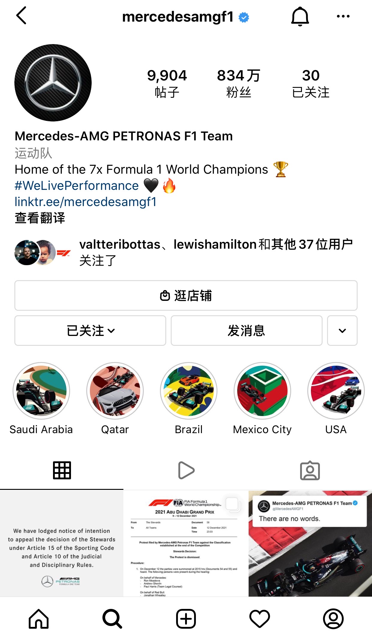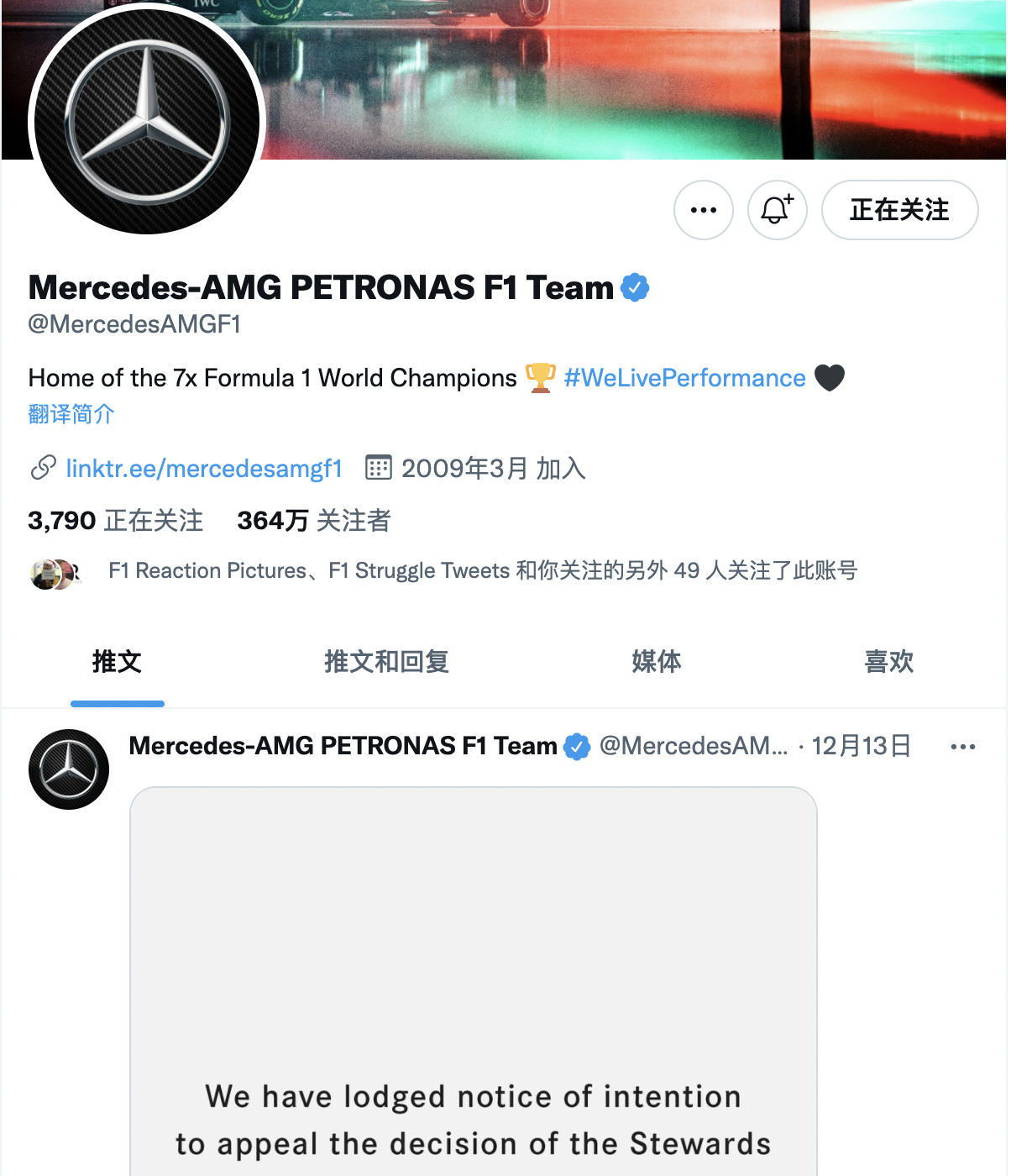 事实上,自从收官战之后,梅赛德斯只在社交媒体上发布了两次上诉的官方文件,随后再也没有发布任何内容。